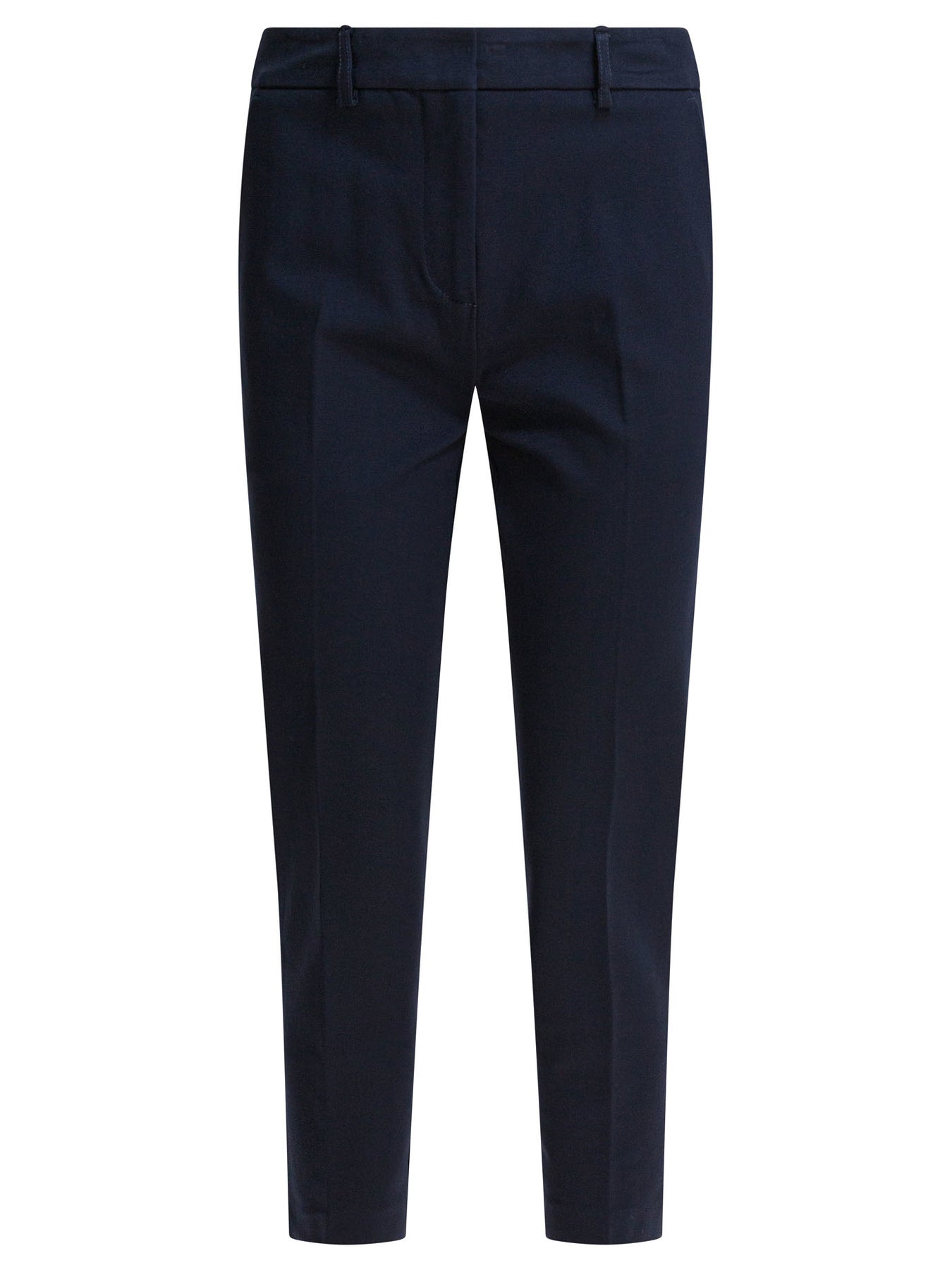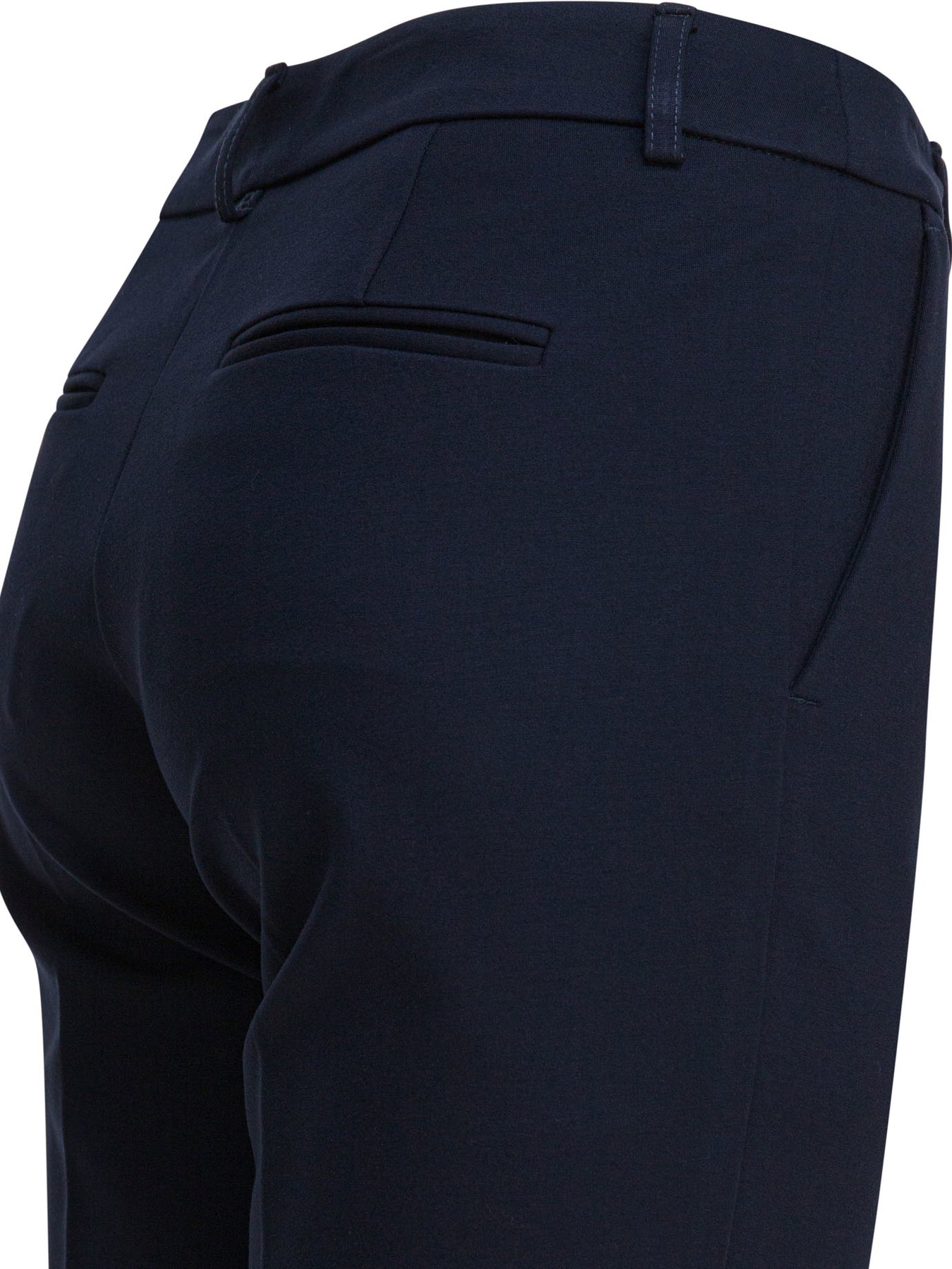Semper viscose pants with a mid-rise construction, made of viscose blend fabric. They feature belt loops and a front closure consisting of a zipper and concealed button. The silhouette is defined by back pleats that give shape to the back. They have two welt pockets positioned on the back and two side pockets inserted on the front seams. || - Solid color - Mid-rise waist - Belt loops - Zipper and concealed button closure - Back darts - Two back welt pockets - Two front side pockets - Slim fit