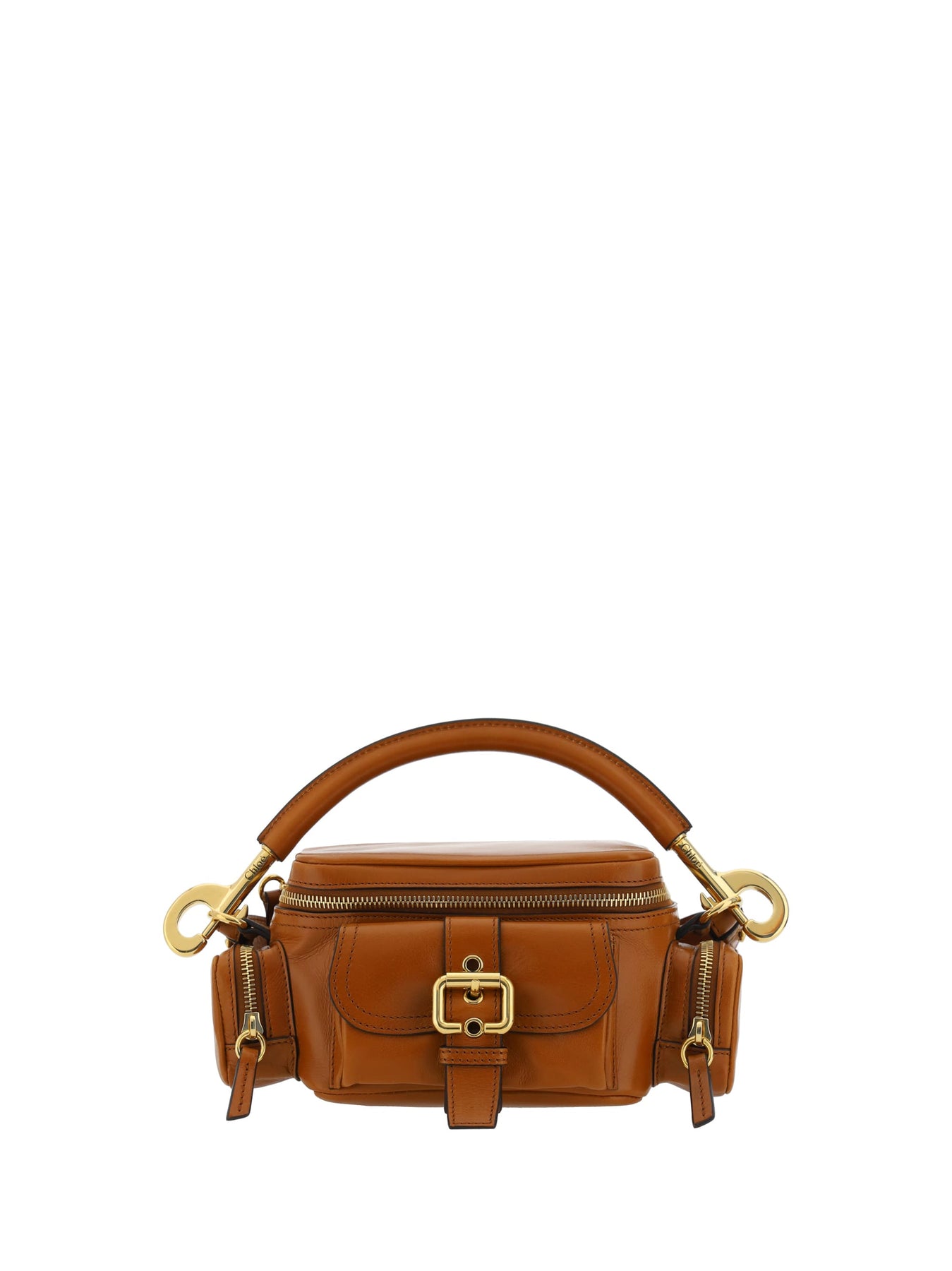 "Camera Bag" small bag in shiny leather from Chloè, with adjustable shoulder strap, canvas interior with open pocket, zip closure, side pockets with zip, front pocket with flap and strap.