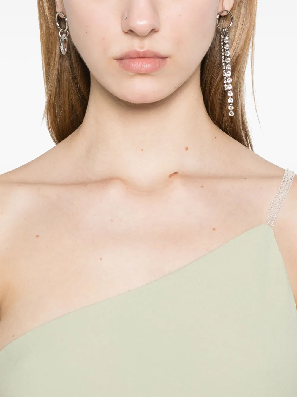 Elodie Maxi Dress Features light green hidden side zip and hook closure one shoulder design beaded chain back slit Composition Lining: 100% polyester Outer: 70% acetate, 30% polyester Washing instructions Dry clean only Brand ID: R25S2273TP