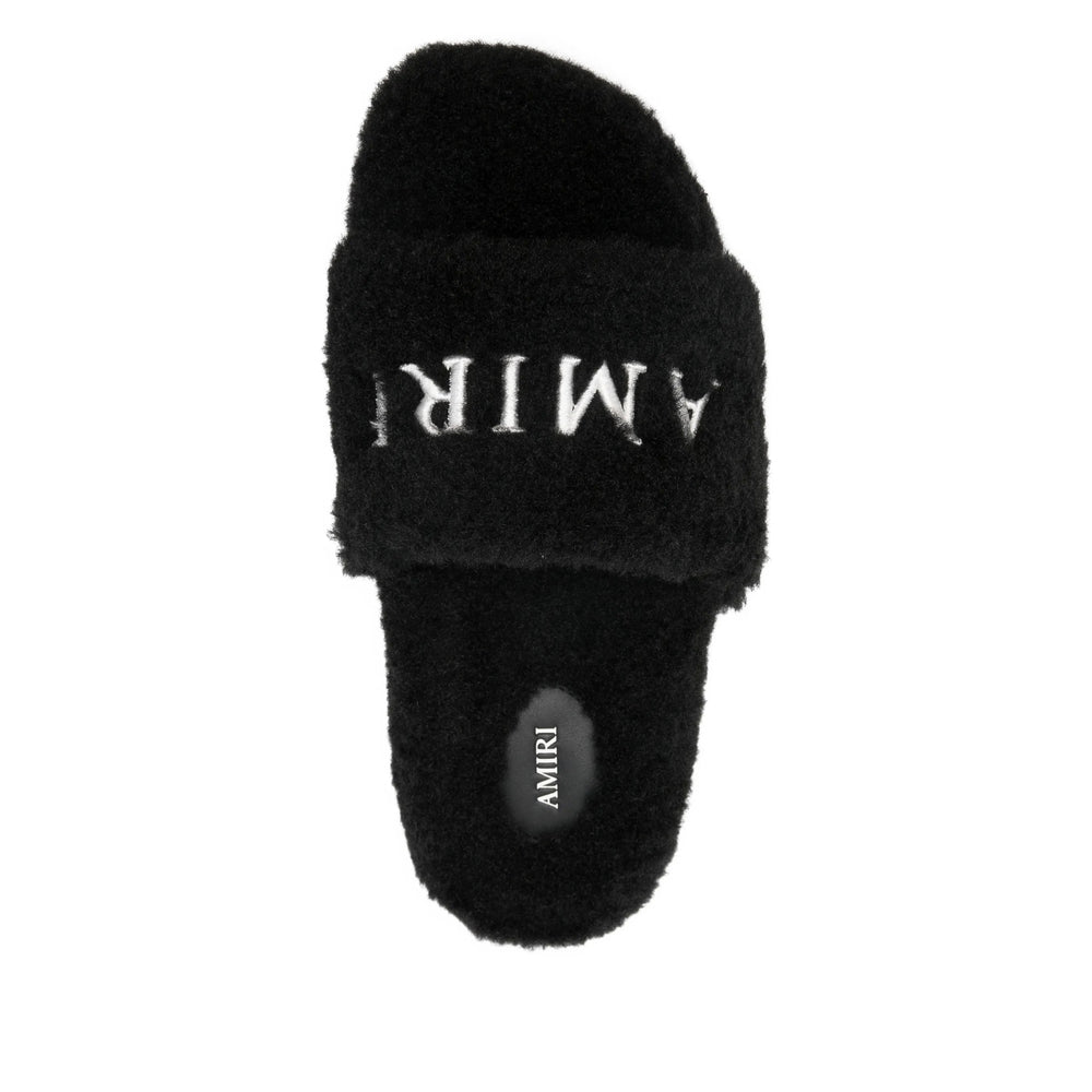 black embroidered logo slip-on style open toe flat sole
