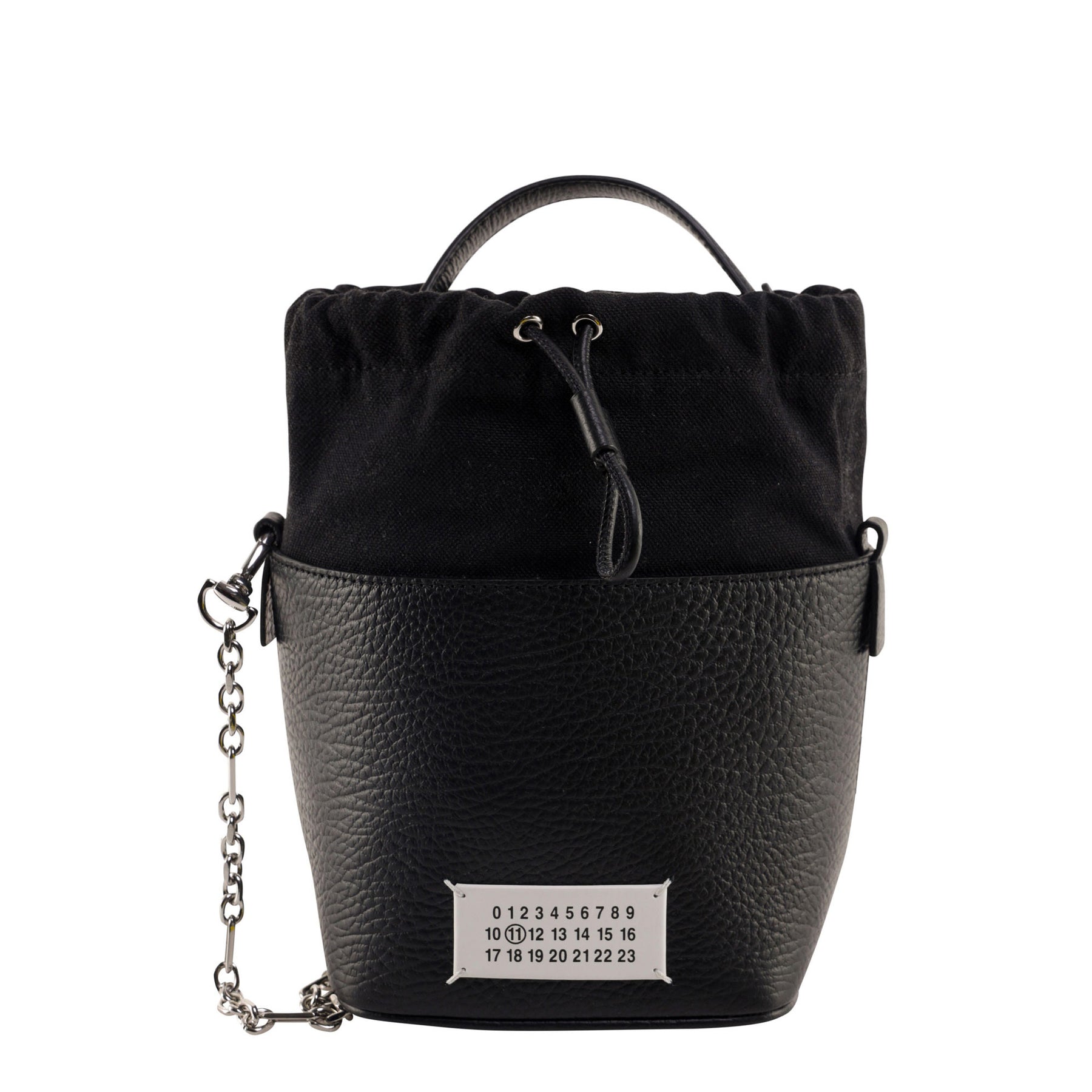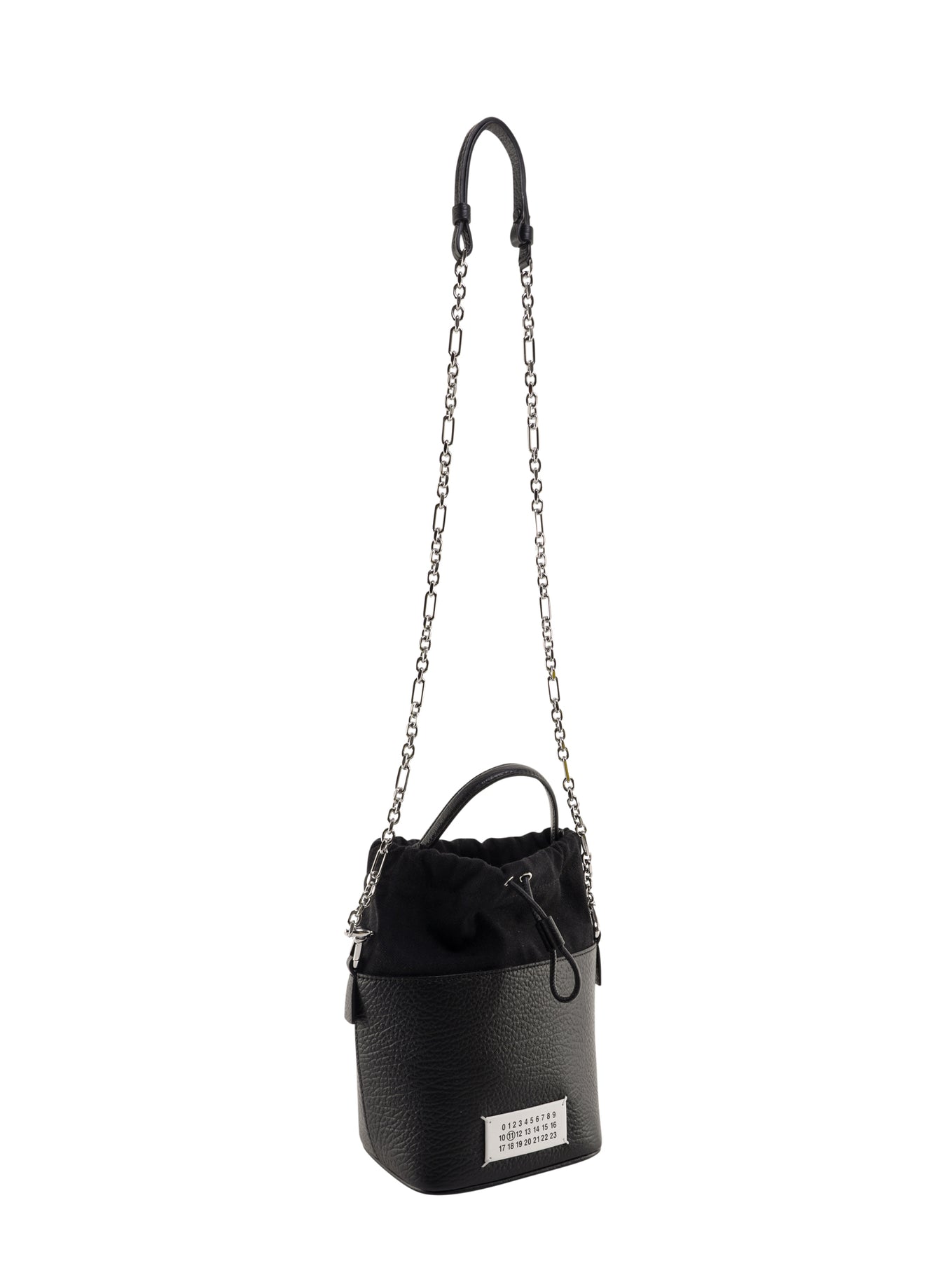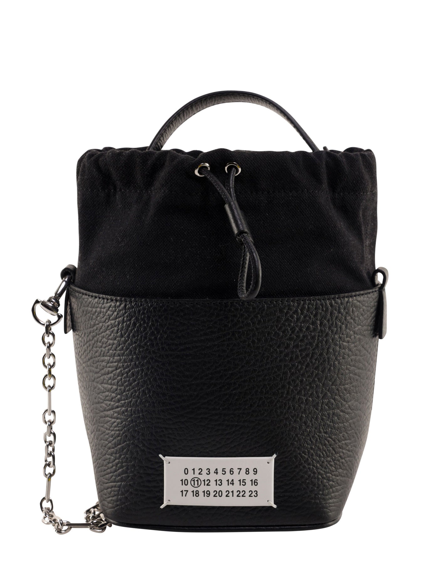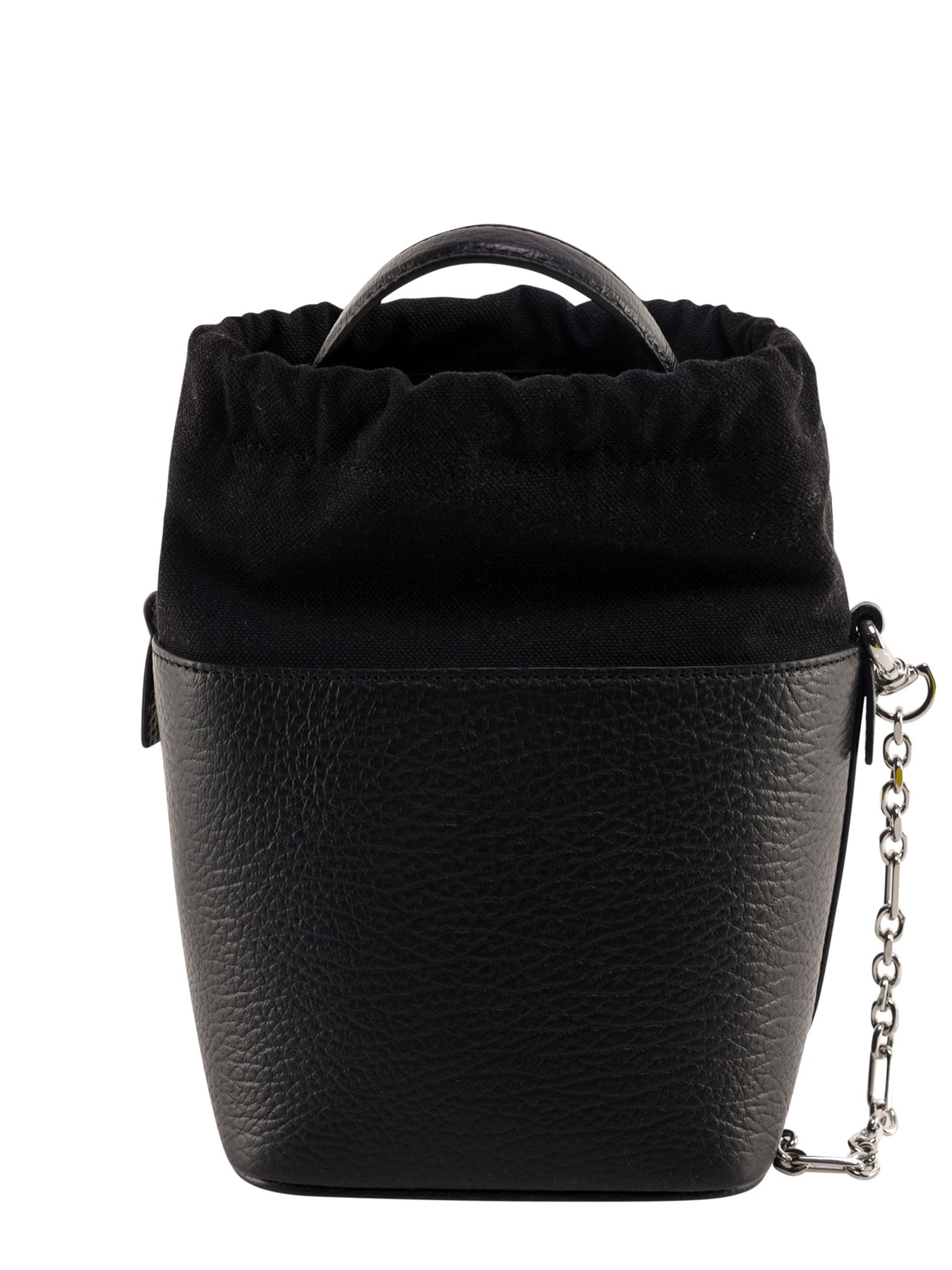 Drawstring closure and removable leather handle Removable chain shoulder strap Internal pocket and canvas insert Made in Italy Leather Lining: cotton W: 15 cm x H: 14 cm x D: 12 cm SKU: S61WG0035P4348T8013