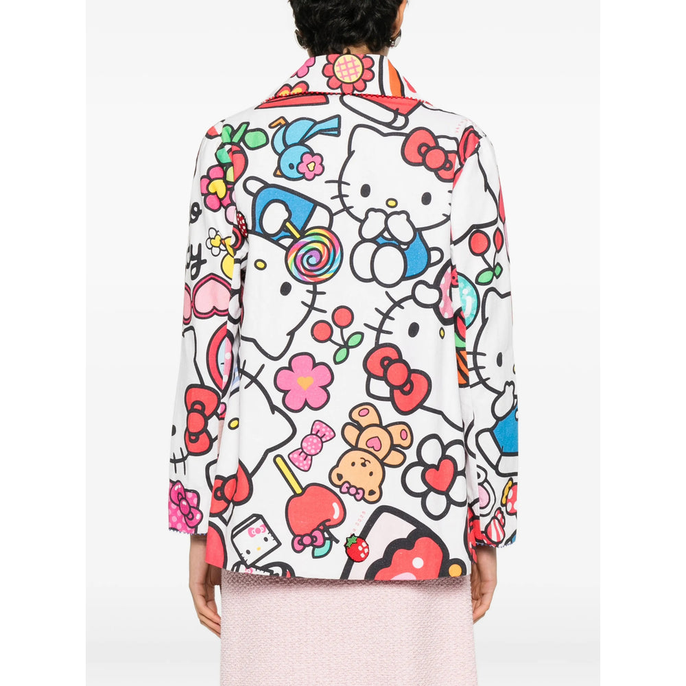 white and multicolour notched lapels button fastening cuffs contrast pattern