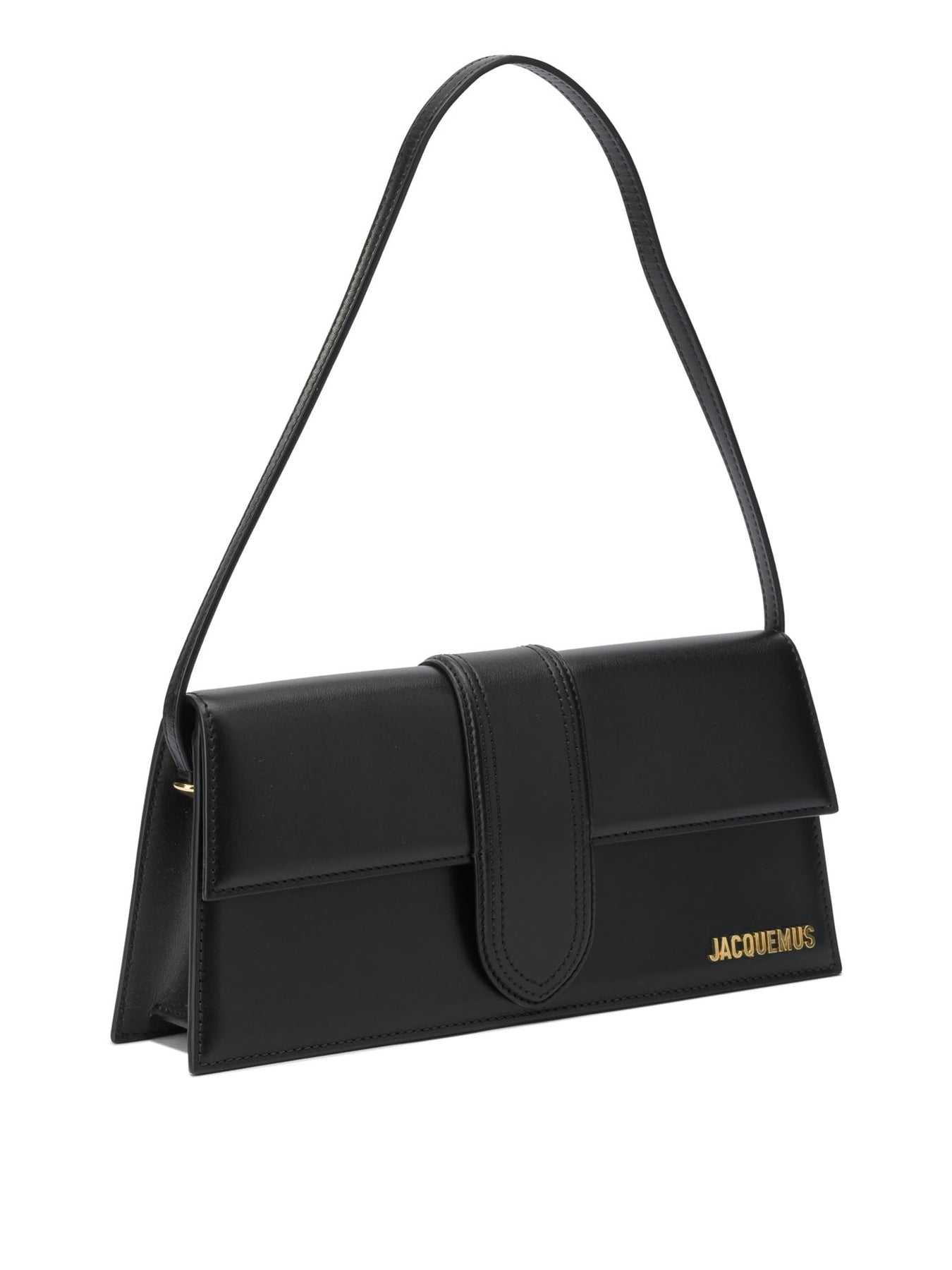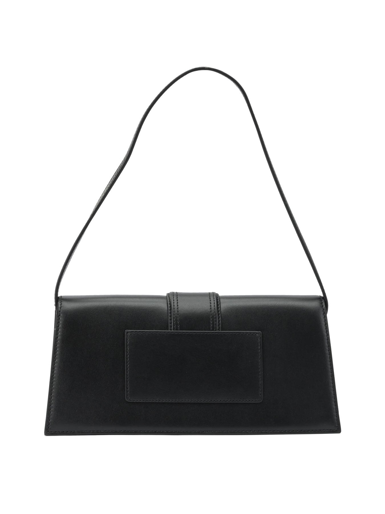 Jacquemus "Le Bambino Long" shoulder bag, made with rigid structure in selected leather. The model features an elongated and compact silhouette, constructed with a front flap equipped with a magnetic closure. The thin shoulder strap, attached at the sides, is not adjustable. The interior is fully lined and includes a credit card pocket. The edges are finished by contrasting dyeing, while a gold metal logo completes the front. || - Magnetic flap closure - Slim, non-adjustable shoulder strap - Interior card pocket - Patch pocket on the back - Gold metal trim and logo - Fully lined model - Edges finished by dyeing