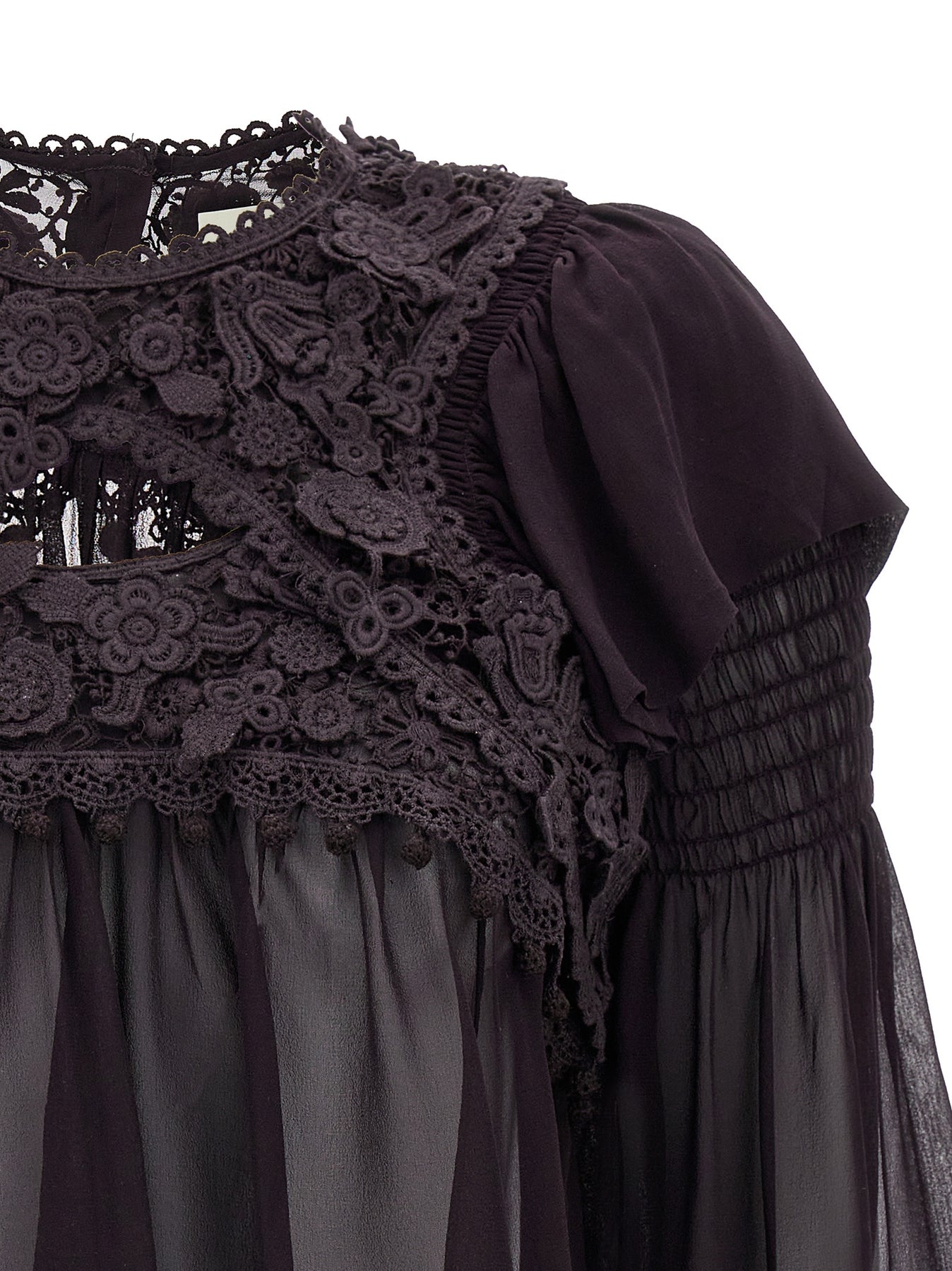 Rokia' silk top with embroidery, round neckline, and long smock point cuffed sleeves.