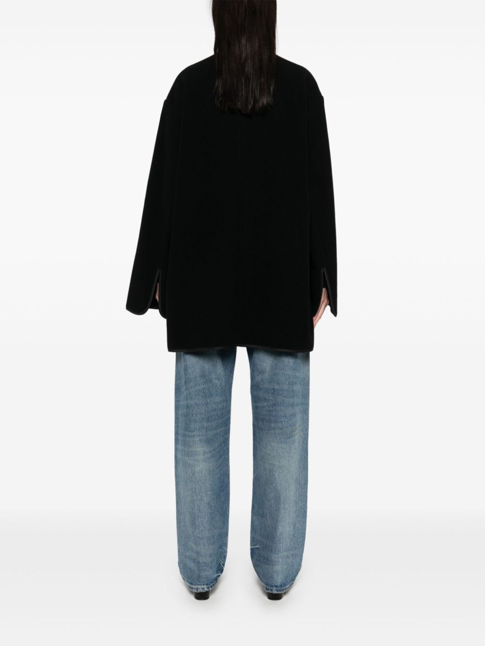 black front two-way zip fastening two side patch pockets split cuffs side slits