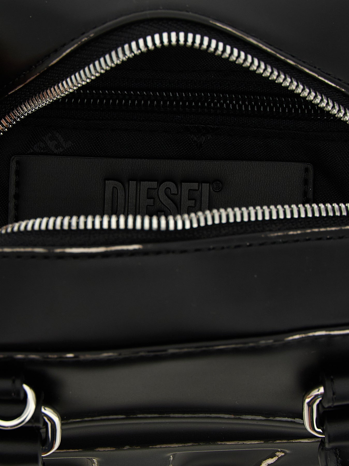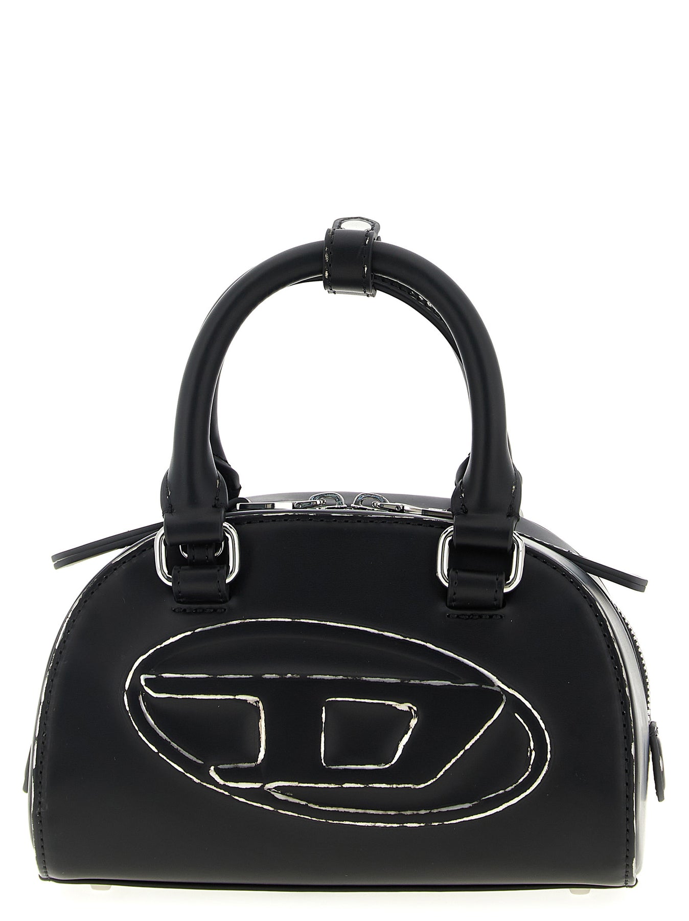 '1dr Dome' bowling handbag in leather-effect fabric with a used finish, high-frequency embossed 'Oval D' logo, double fixed handle, top zip closure, rigid base with metal feet, adjustable and removable shoulder strap.
