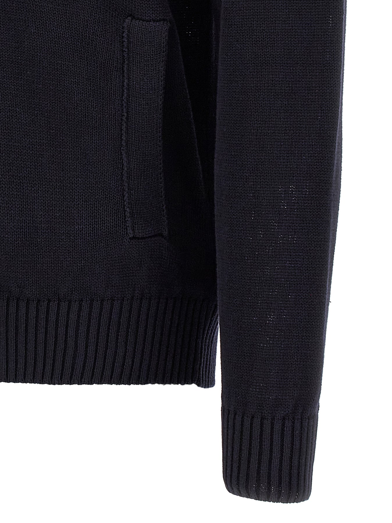 'Chioto' cotton blend linen cardigan with high neck, front button closure, long cuffed sleeves, pockets.