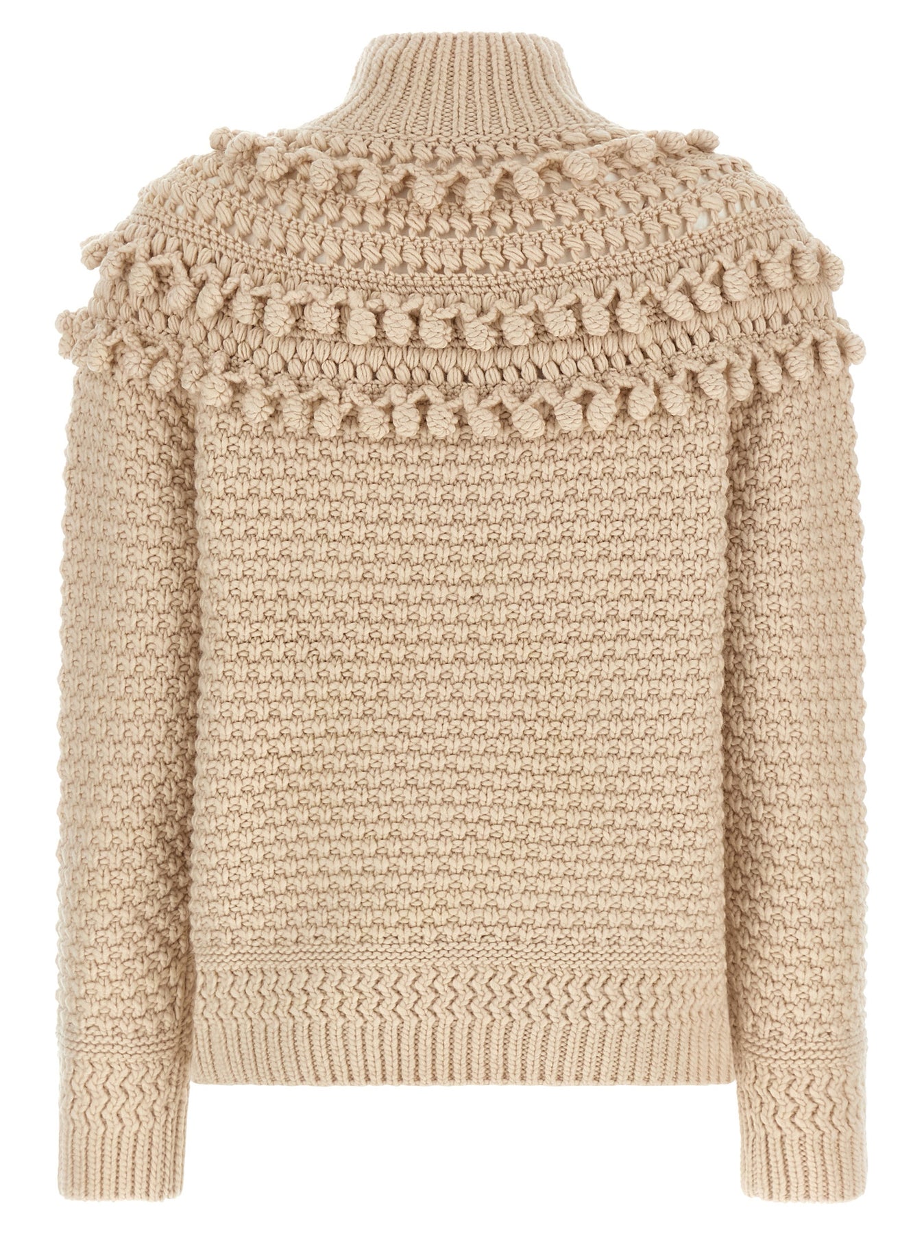 'Hypnotic Bauble' knitted wool sweater with pompom, high neck, long sleeves with cuffs and dropped shoulders.