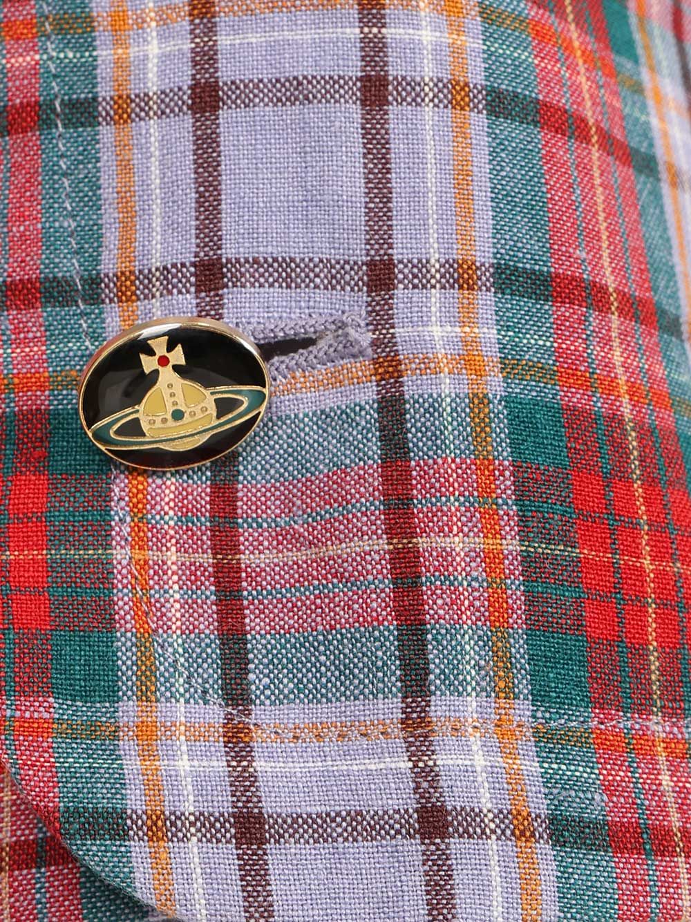 Single-breasted tartan linen blazer with wide lapels and patch pockets, closure with metal buttons with Orb logo