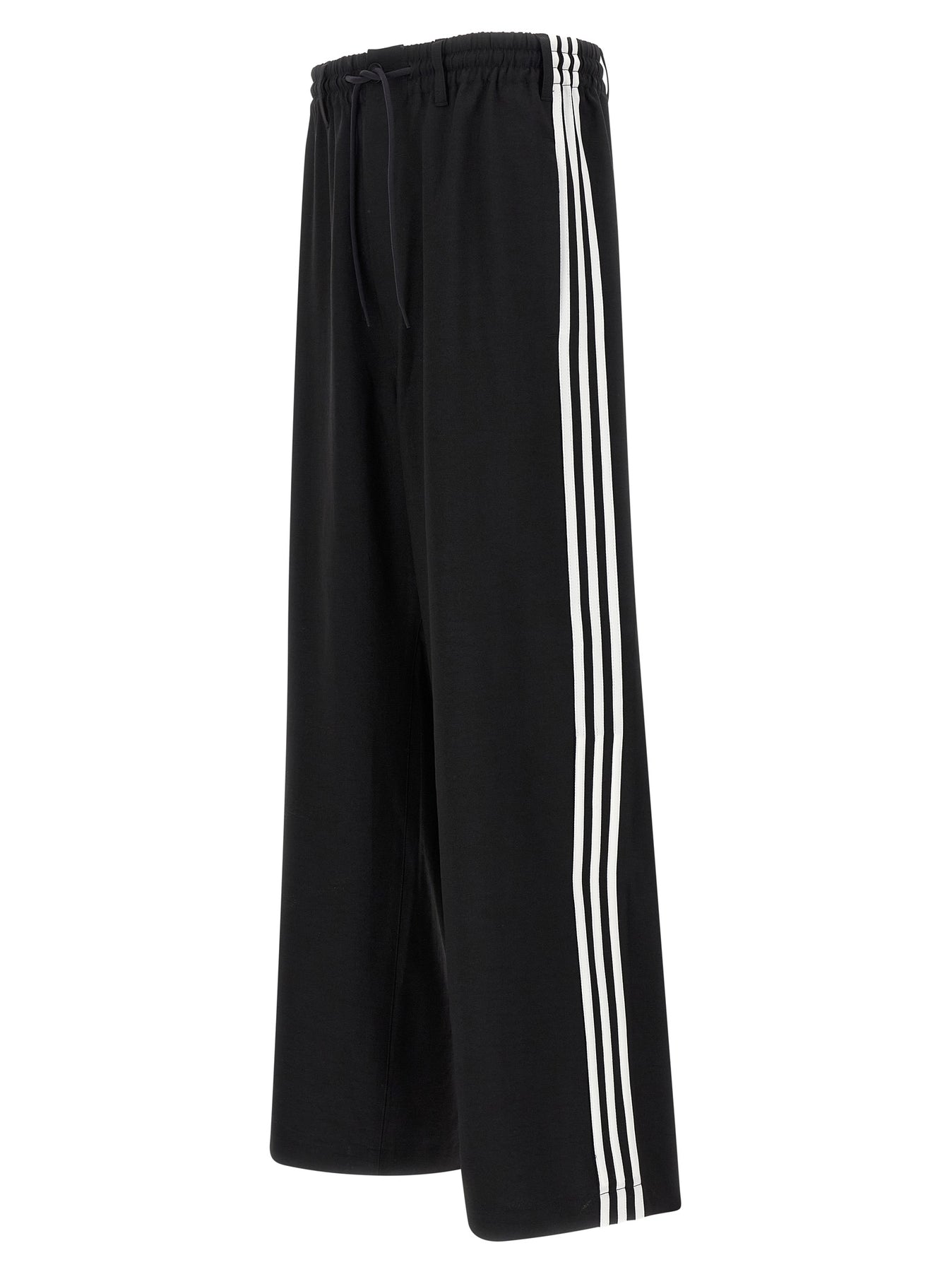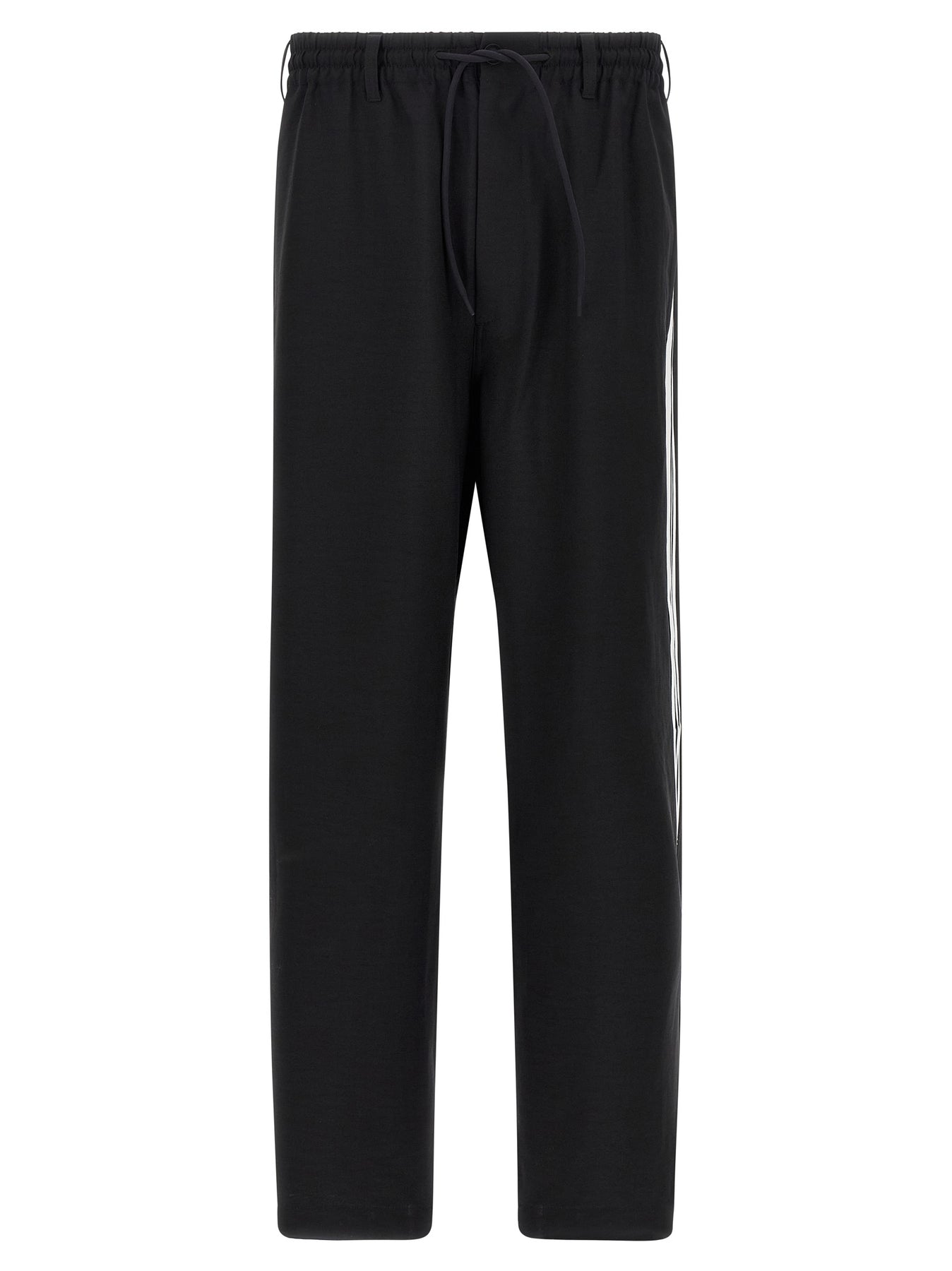'Y-3 3-Stripes' joggers in lyocell, nylon and sheep wool blend with contrast details, adjustable drawstring elastic at the waist, zip and front button closure, pockets, straight leg, part of the strips are reinforced with wire.