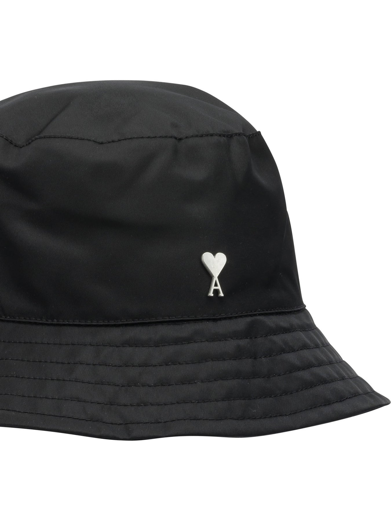 Ami Paris "Ami De Cœur" bucket hat constructed with soft-line panels and a compact silhouette. The structure features a light padding that promotes a comfortable and stable fit. The medium brim, finished with regular topstitching along the edge, defines the essential shape of the accessory. Brand logo on the front. The interior is designed to provide comfort in daily use, without superfluous decorative elements. || - Bucket hat pattern with paneled construction - Soft, lightly padded construction - Medium brim with regular topstitching - Logo on front panel - Regular fit