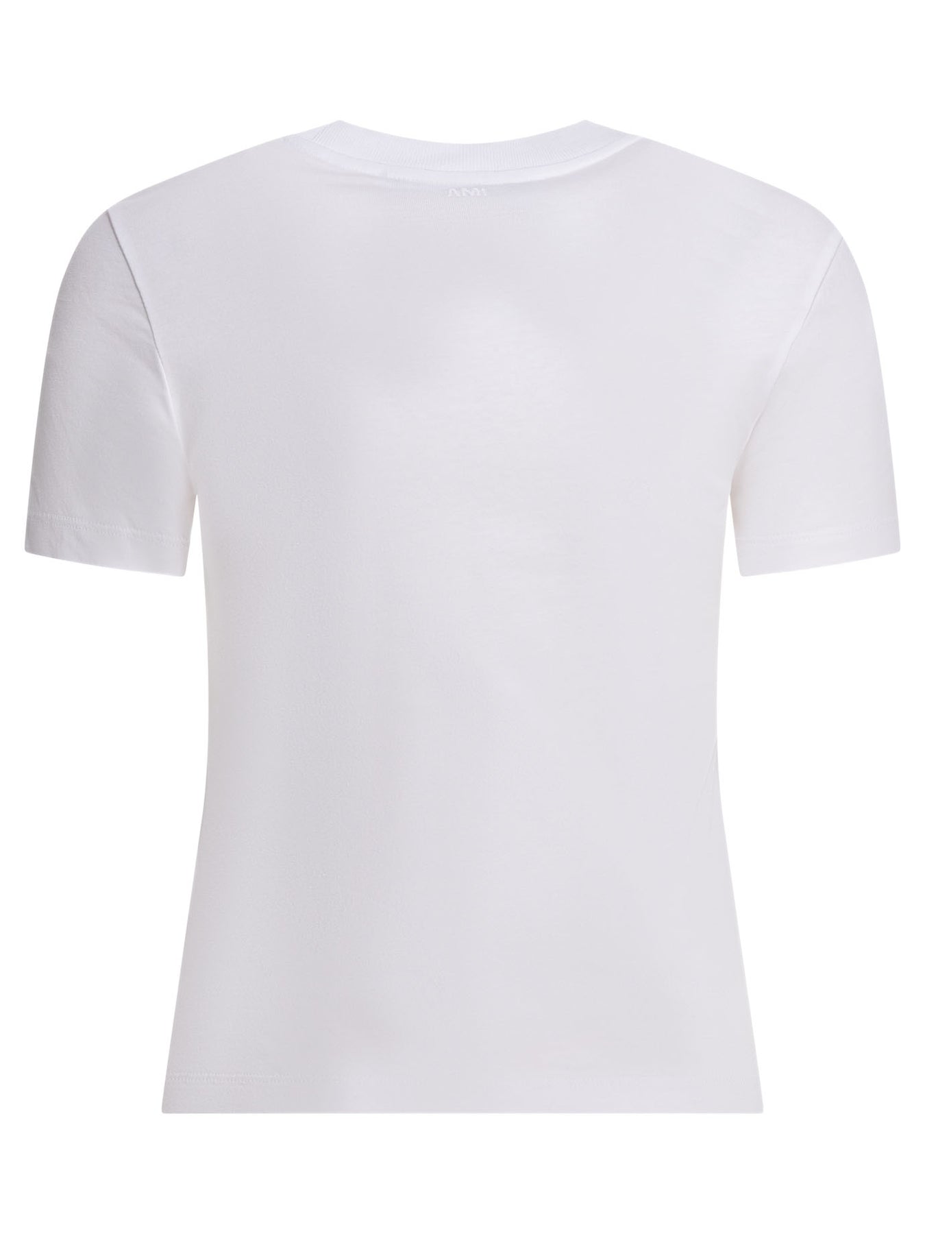 Ami Paris logo crewneck T-shirt made from lightweight cotton jersey. The fitted structure follows the line of the body, while the classic cut and sharp seams define the essential silhouette. Ami de Coeur embroidery is applied on the chest, while on the back, at the base of the neck, there is tone-on-tone "ami" embroidery. The garment is finished with a tubular collar and topstitched hems. || - Ami de Coeur logo embroidered on the chest - Tone-on-tone "ami" embroidery on the back at the base of the collar - Short sleeves - Lightweight cotton jersey - Slim fit
