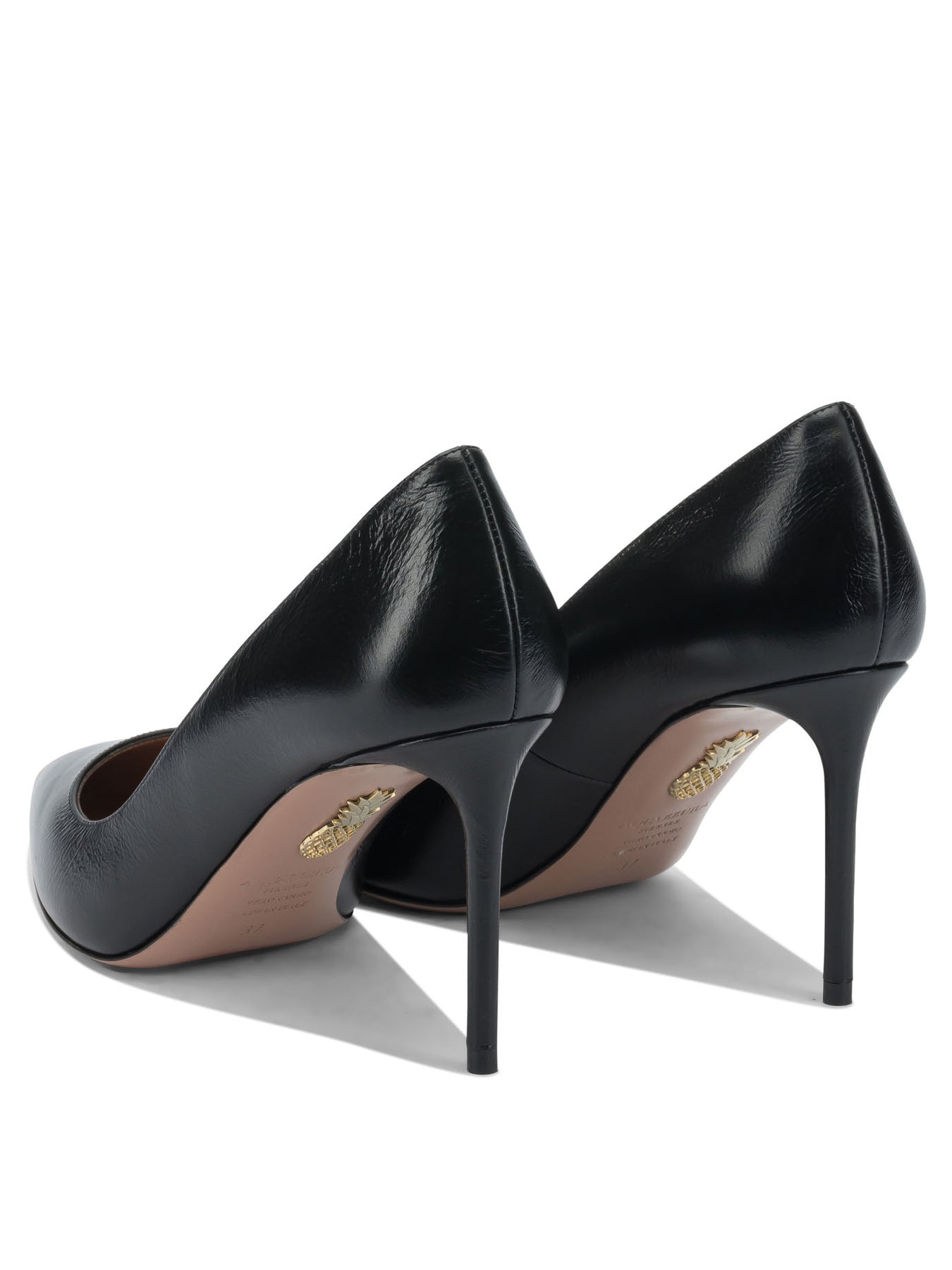 Aquazzura patent leather pumps with a glossy-finish patent leather upper. The structure features a tapered silhouette, characterized by a pointed toe and slim stiletto heel. The construction is linear, with no visible stitching on the upper and a lined interior. The fit is defined and keeps the line snug on the foot. Insole and sole are made of leather. || - Patent leather upper - Pointed toe - Stiletto heel - Leather lining and insole - Leather sole