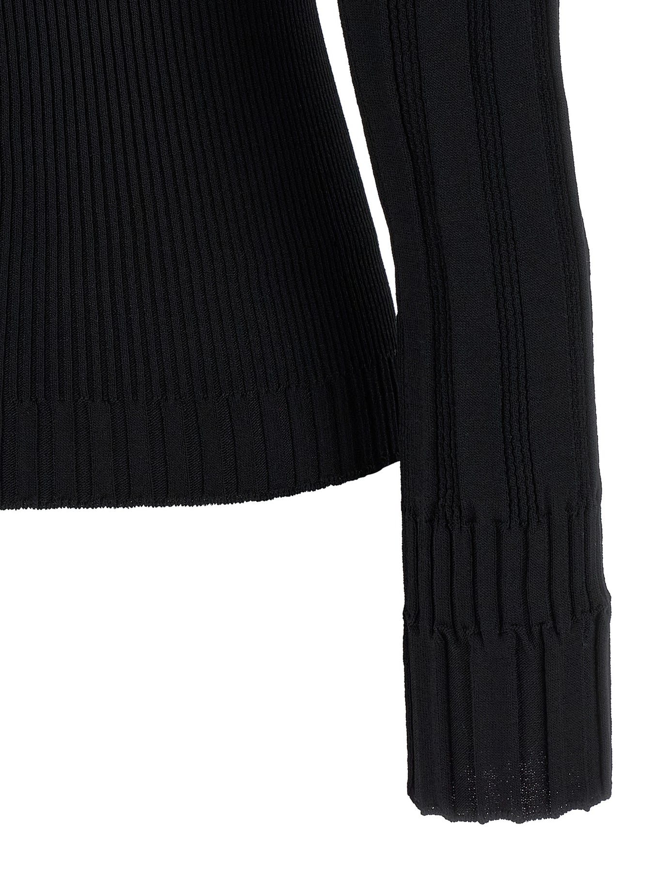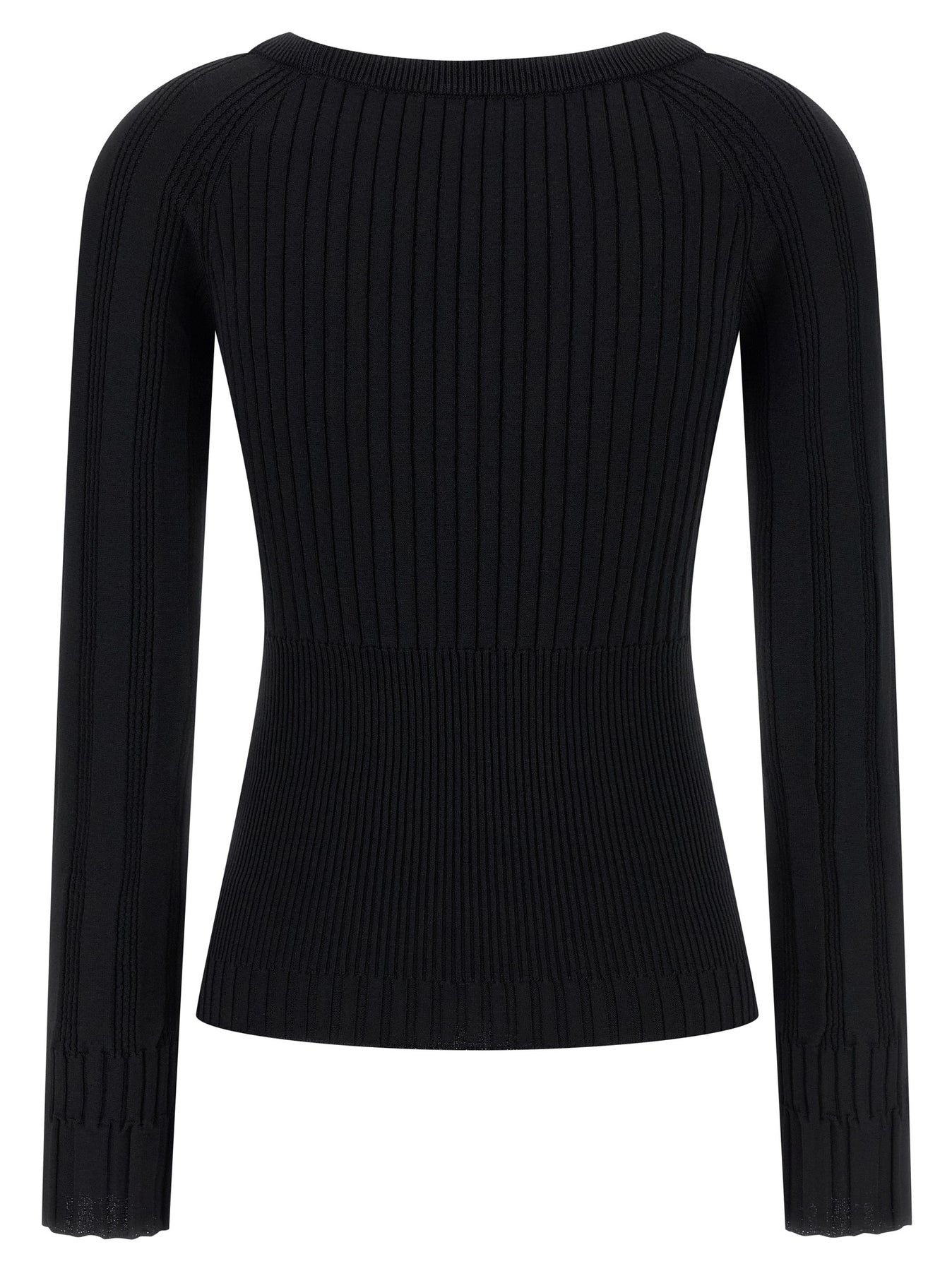 Stretch viscose sweater, crew neck, 3 symmetrical side 'Testa di leone' buttons, long sleeves.