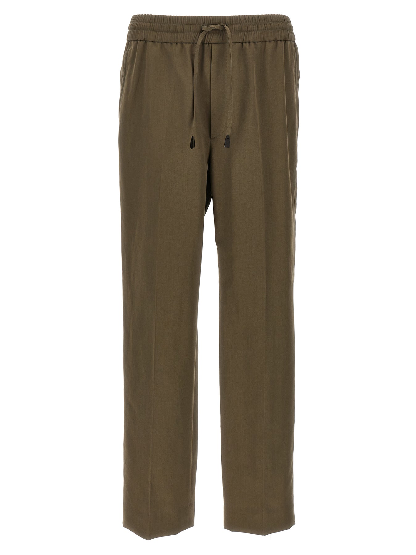 'Asolo' pants in linen and cotton blend, adjustable drawstring elastic waistband, pockets, straight leg, stretched pleat.