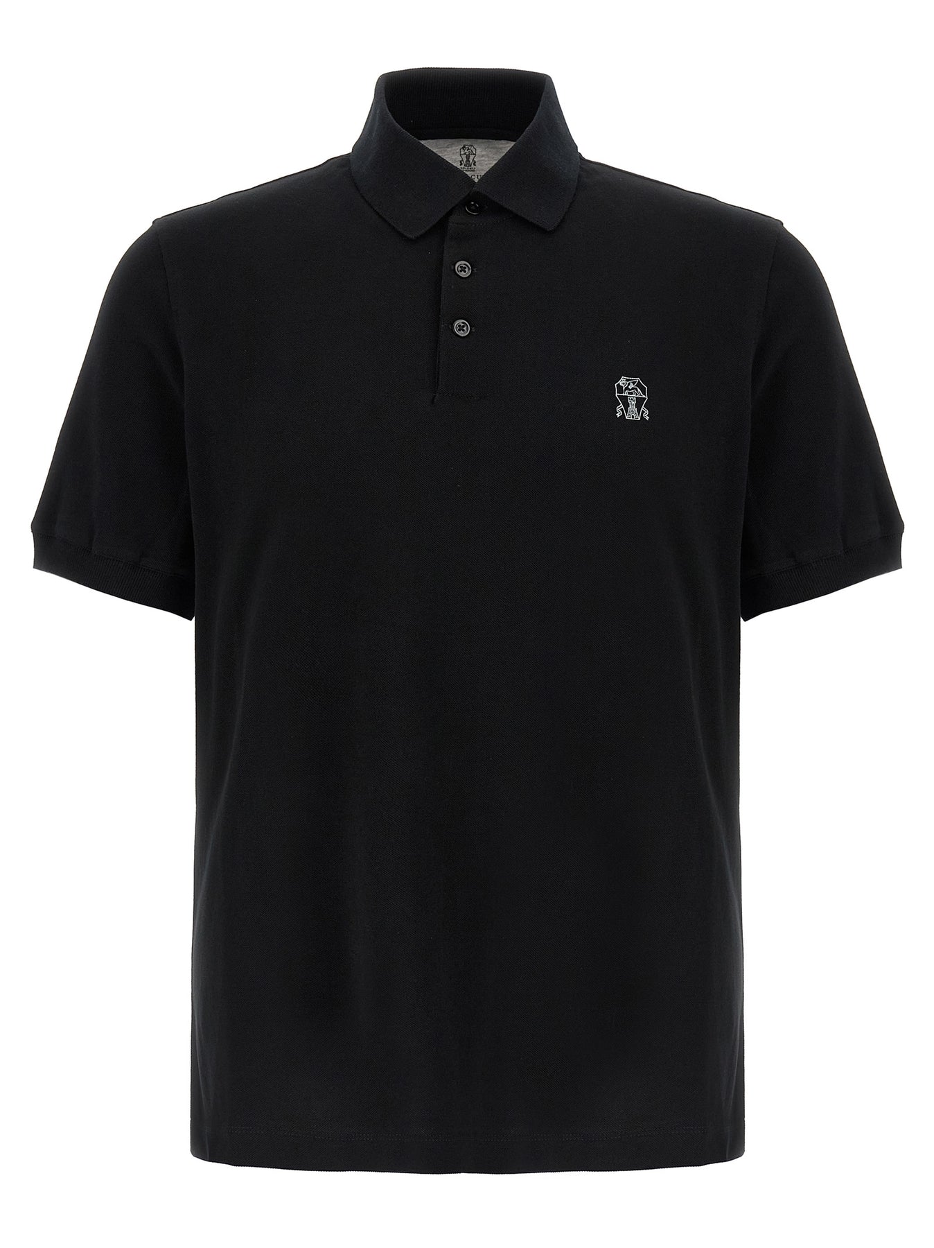 Piqué cotton polo shirt with front logo print, collar and buttons, short sleeves, side vents.