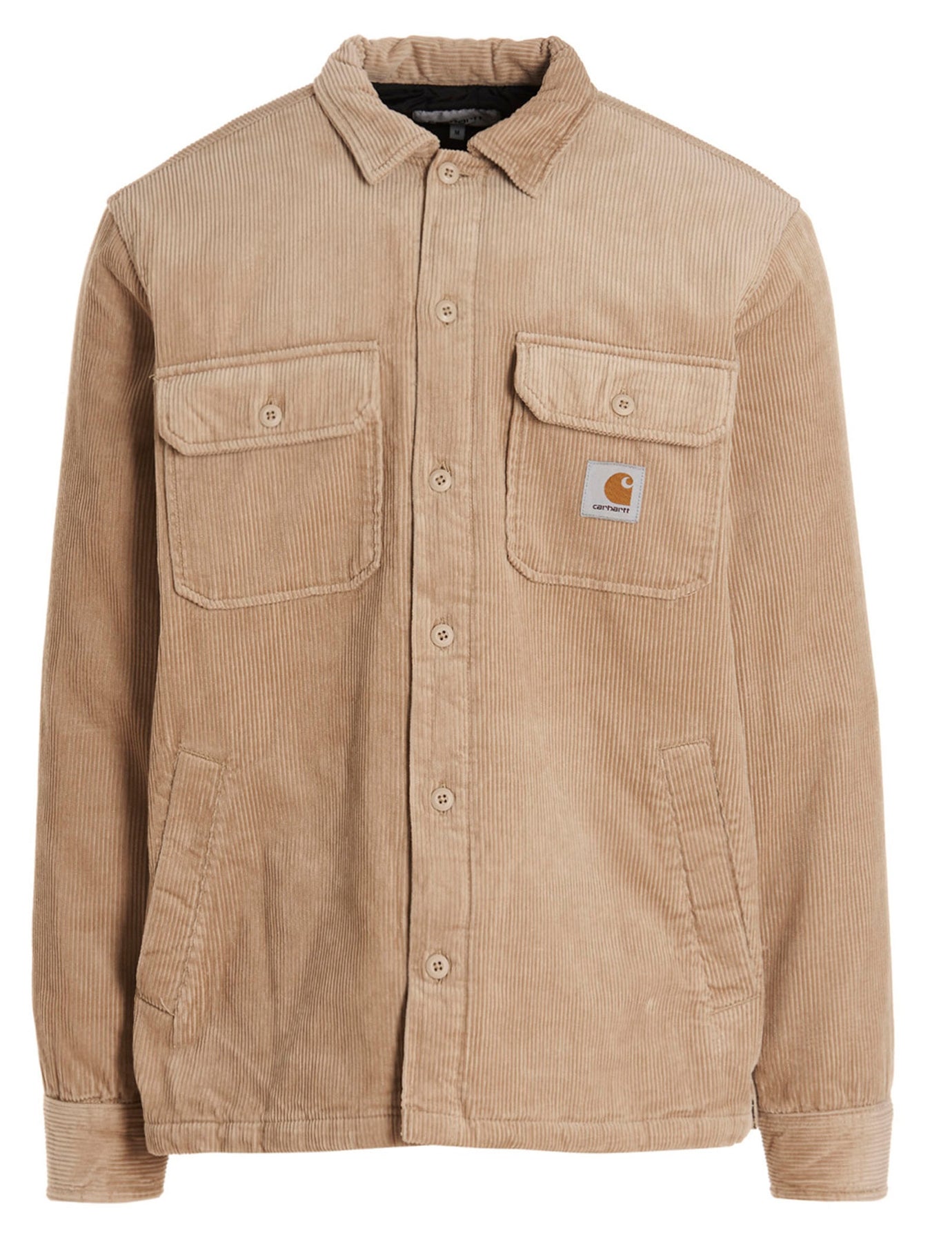Whitsome overshirt in corduroy, quilted and lightly padded nylon taffeta lining, shirt collar, logo patch and front button closure, pockets, long sleeves with cuffs and slightly dropped shoulders.