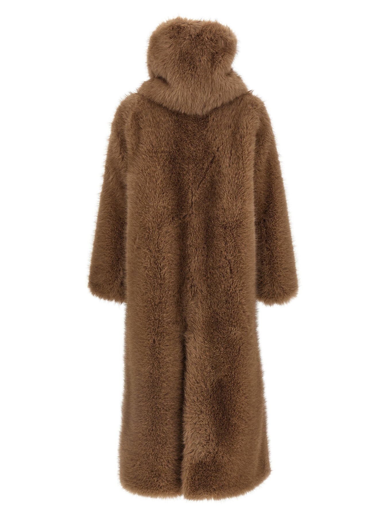 'Biscuit' faux fur coat with front snap button closure, pockets, long sleeves, back split, lining, removable matching tubular scarf.