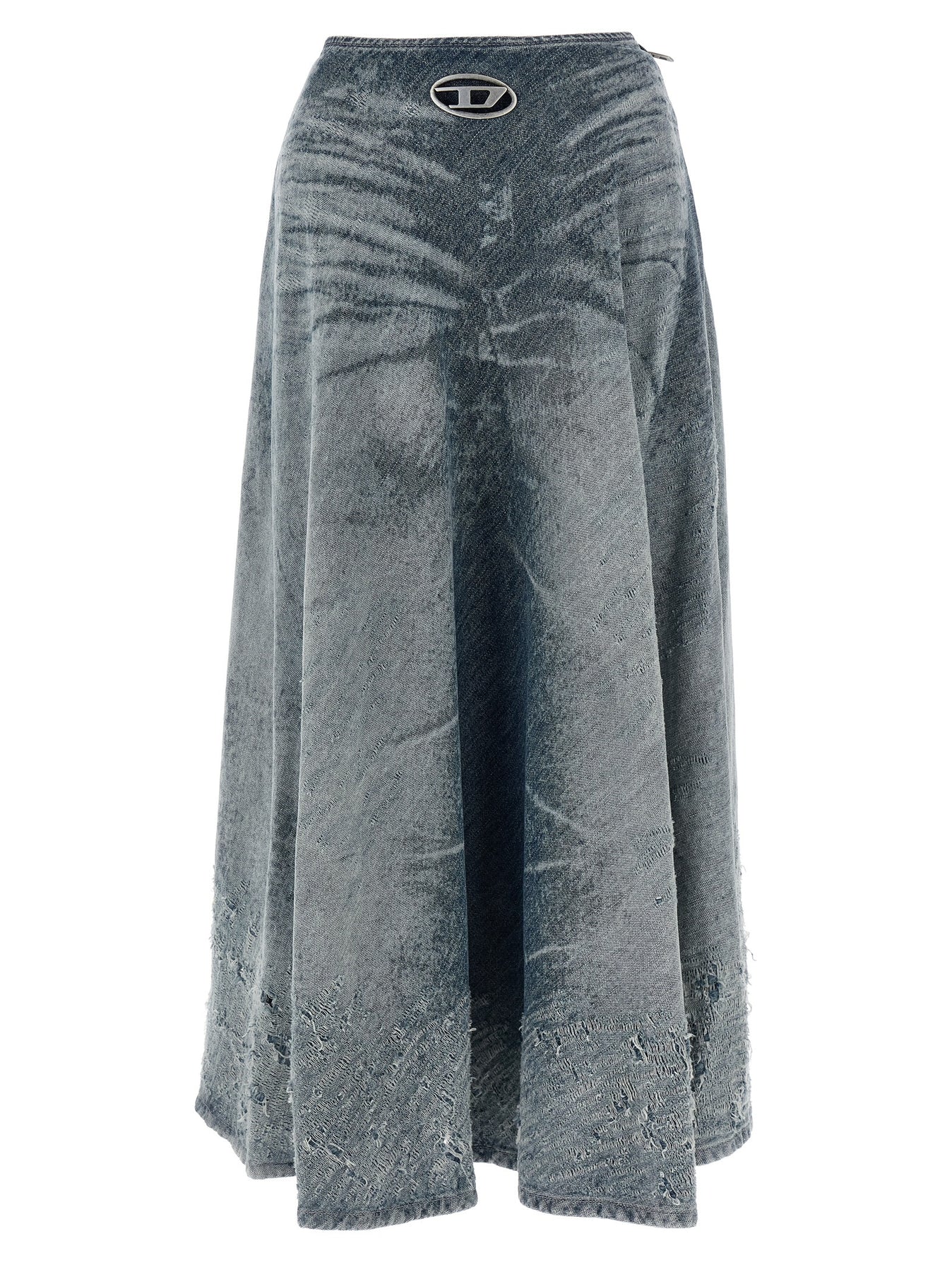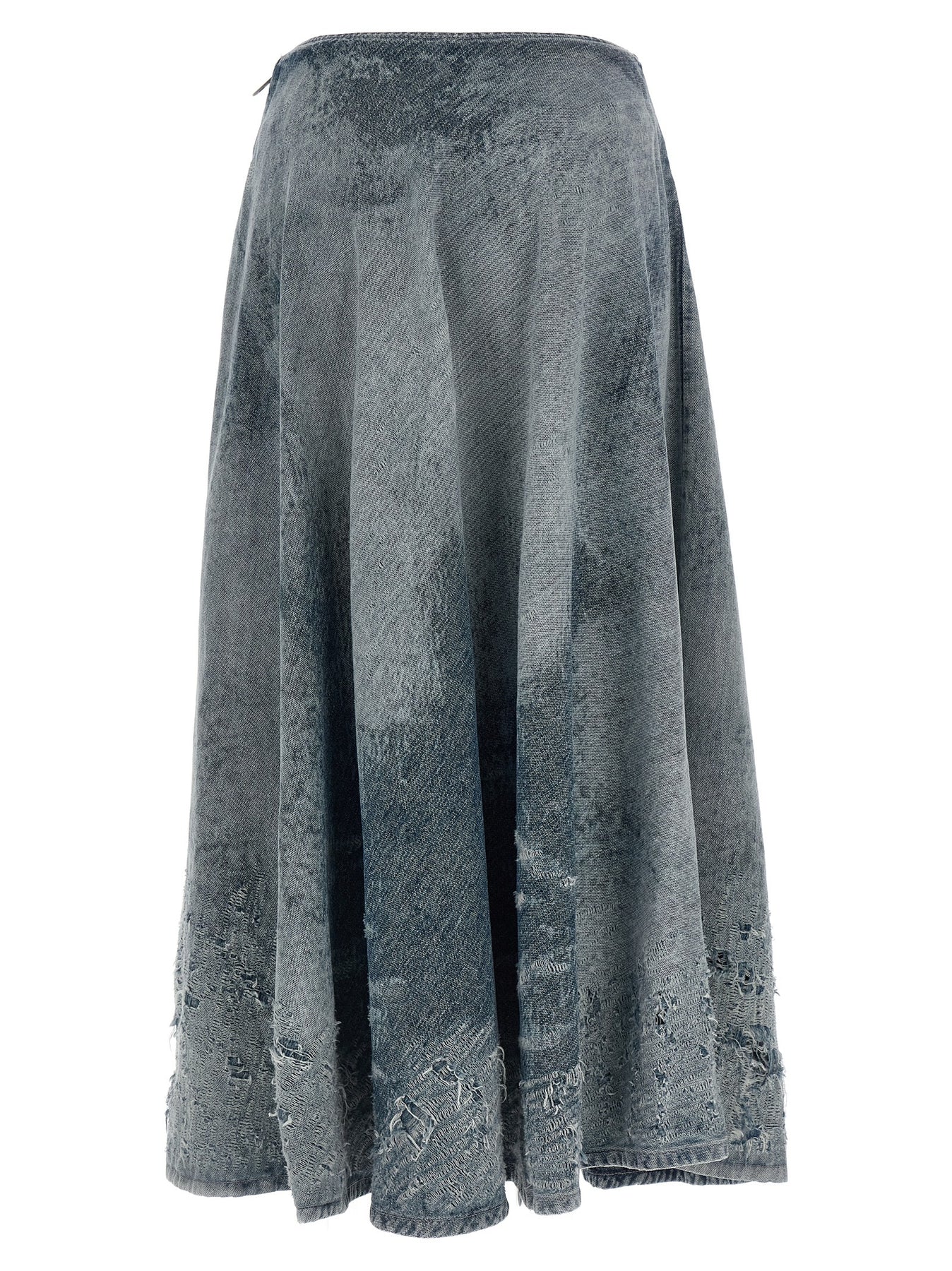 De-Annet-Fsh' long jacquard skirt in cotton denim with abrasions, mist bleach effects and floating threads, front metal cut-out logo, wheel model, side zip closure, unlined.