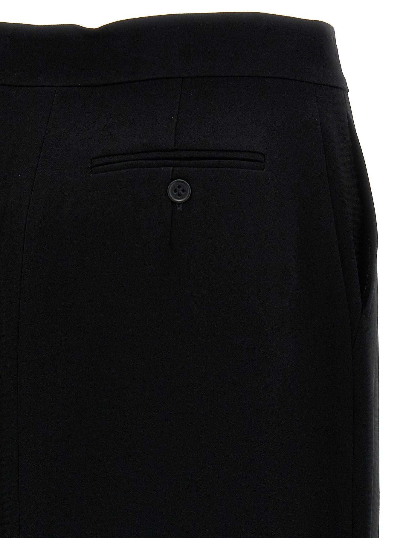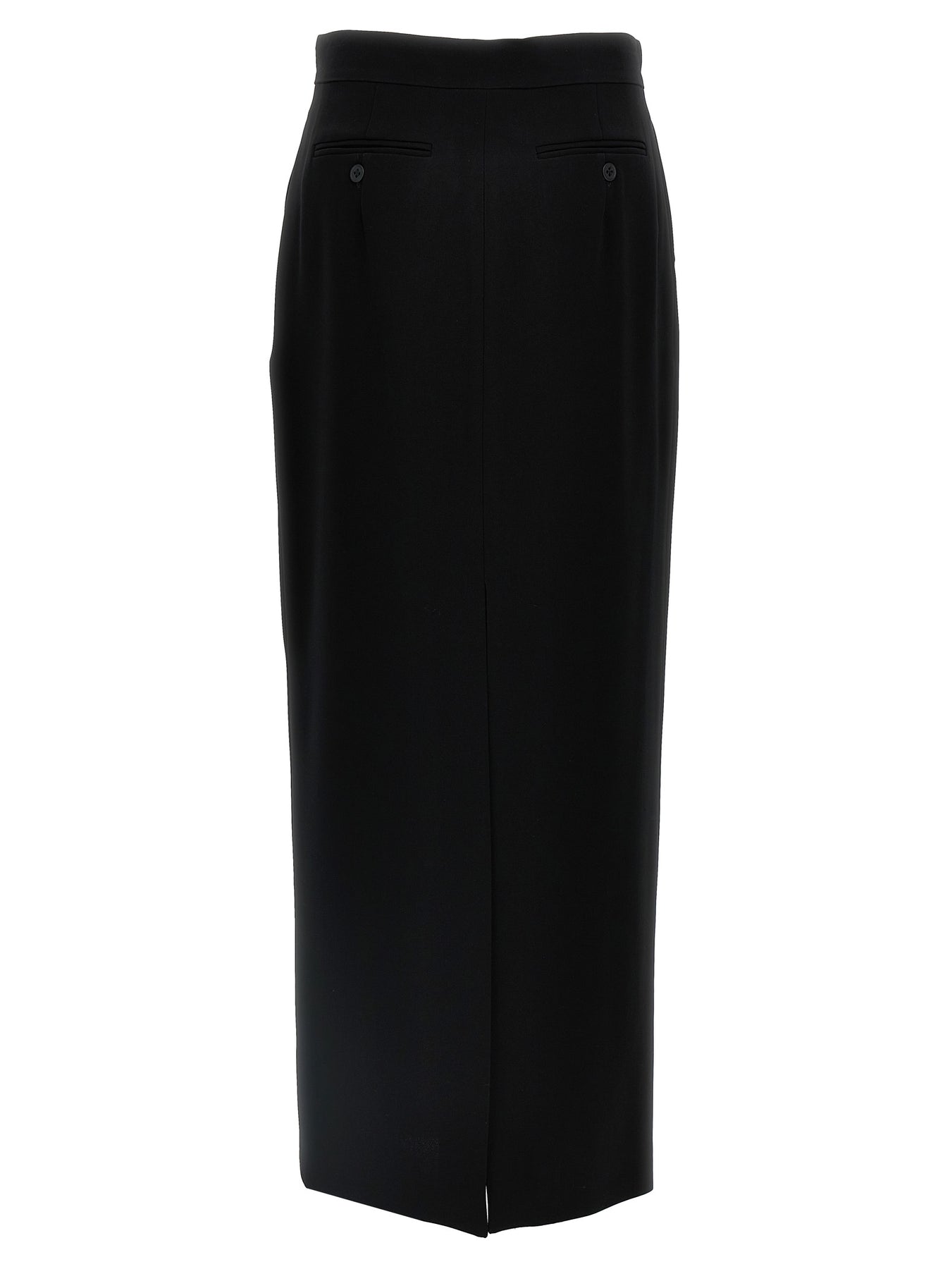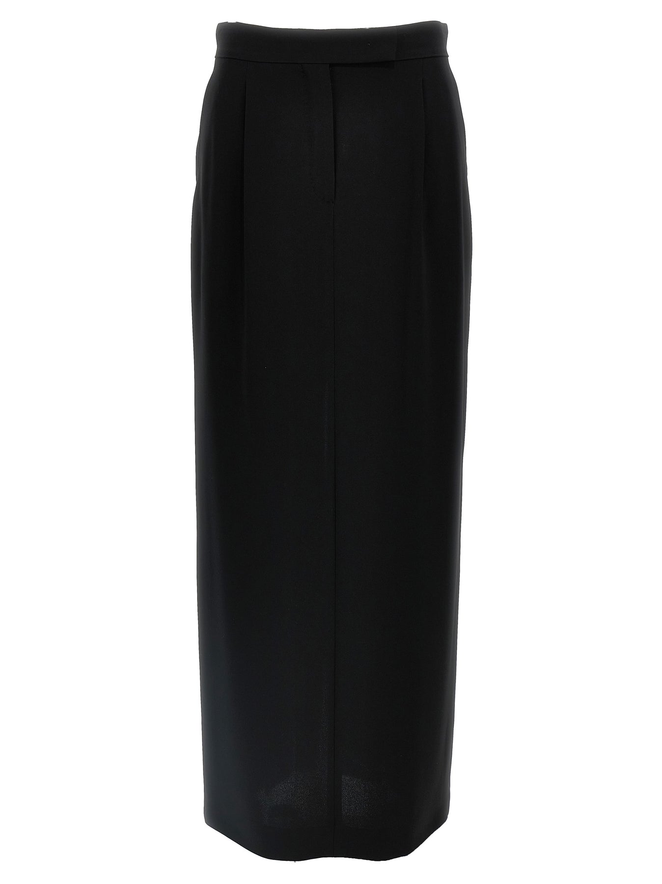 'Lemma' cady skirt, hook and button zip closure, front pleats, pockets, back split.