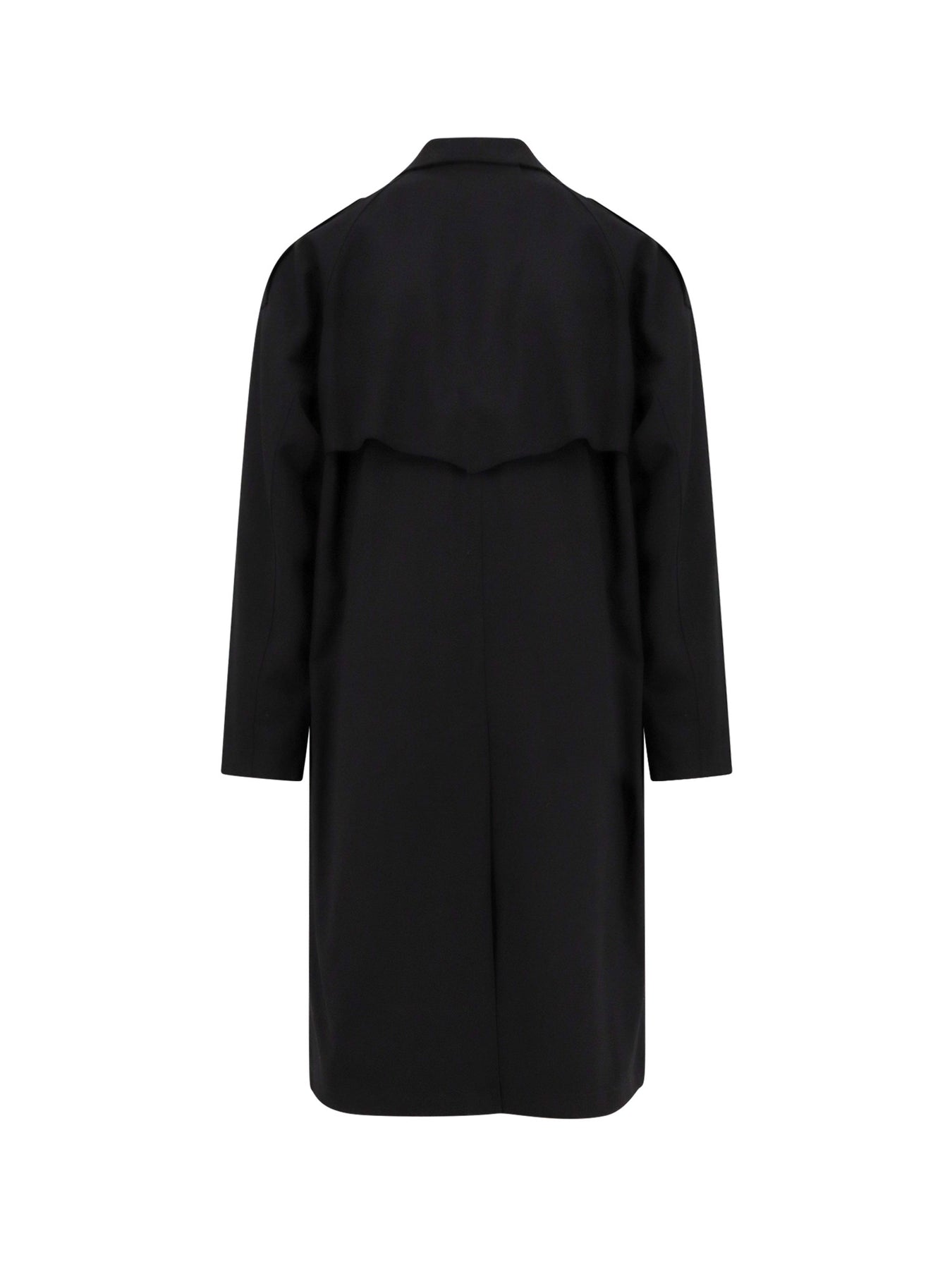 Double-breasted Button closure Front pockets with snaps Back slit with strap and button 50% wool, 50% polyester Lining: 65% polyester, 35% cotton SKU: B51PXLUCADSUNER