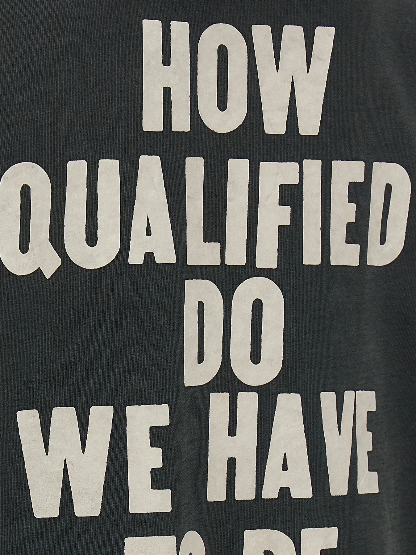 'Qualified' heavy cotton fleece hoodie with vintage sunfade treatment, front and back print, long sleeves with cuffs and dropped shoulders.