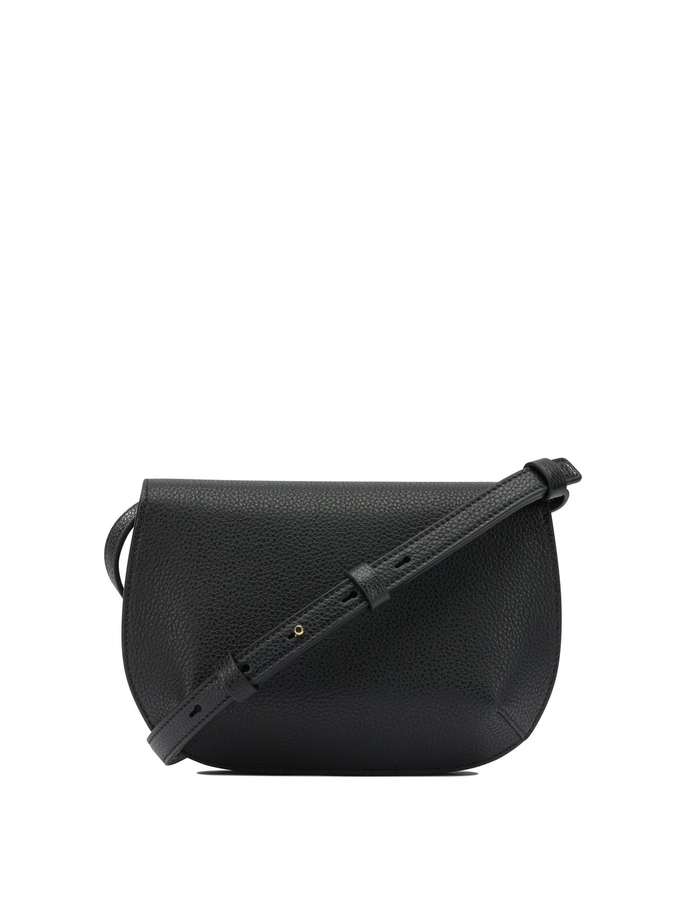 Ferragamo small "Double Gancini" shoulder bag made of grained calfskin leather with pronounced grain texture. The construction features a compact silhouette with a front flap and metal Double Gancini buckle with a gold finish. Removable shoulder strap allows the model to be worn either on the shoulder or as a clutch, adapting functionality to different needs. Smooth trim along the edges and rigid structure define the shape. || - Front flap with metal double hook closure - Removable shoulder strap with a length of 53 cm - Composition: grained calfskin leather - Dimensions: height 15 cm, length 21 cm, width 5 cm - Can be used either as a shoulder bag or as a clutch bag