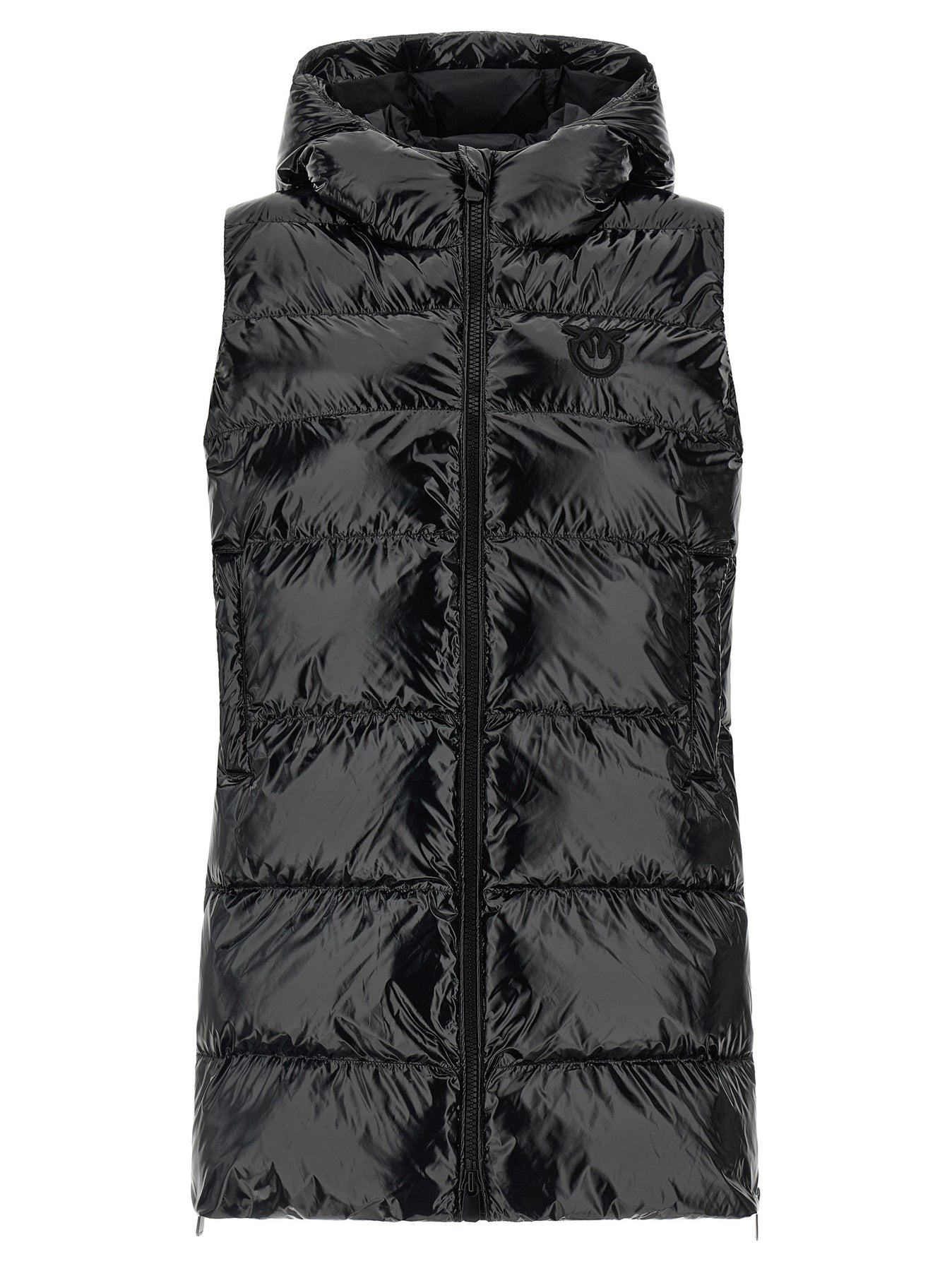 'Graffetta' vest in quilted and padded technical canvas with polished finish, hood, high neck, tone-on-tone 'Love Birds' logo patch and front zip closure, side zip slits.