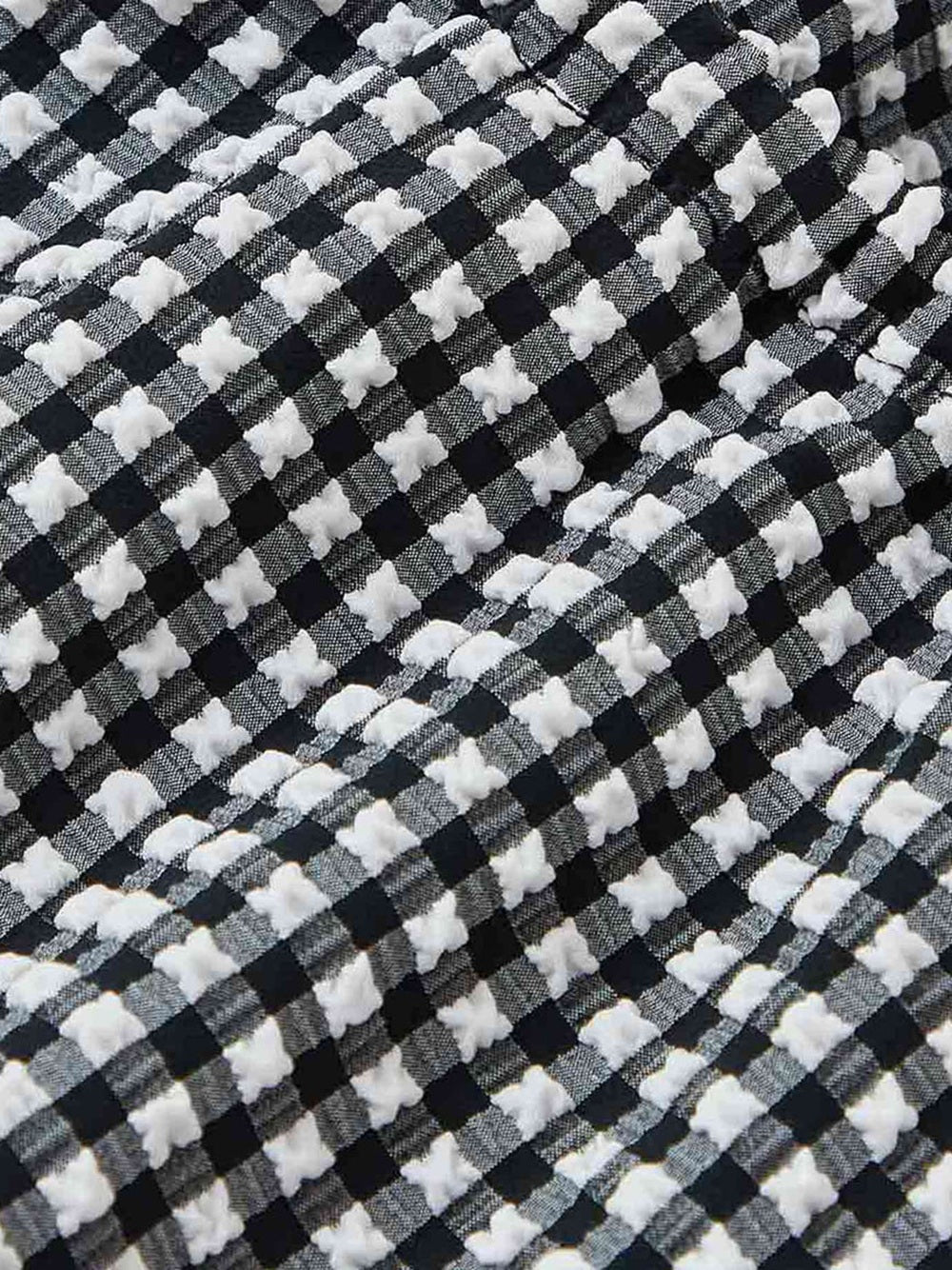 Mini Dress in Seersucker Check, Black Check A dress ready to wear in and out of the water, the mini dress features an adjustable halterneck, a casual A-line fit and a mid-thigh length. Crafted from ultra-lightweight, quick-drying, 2-way stretch seersucker, this dress is designed to take you from the beach to the bar effortlessly. No need to change. COMPOSITION 91%PL9%EA ID DHALTERGIN