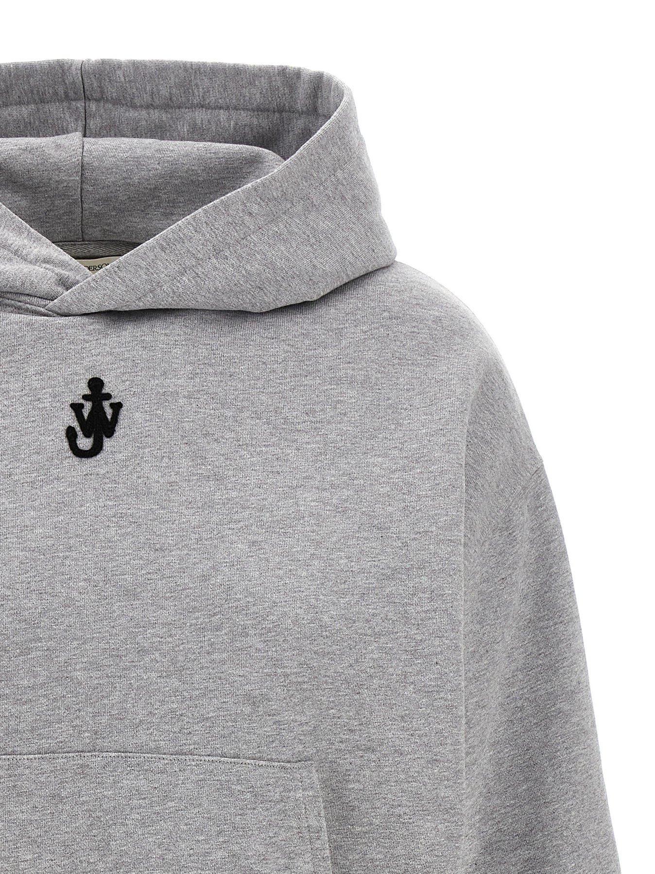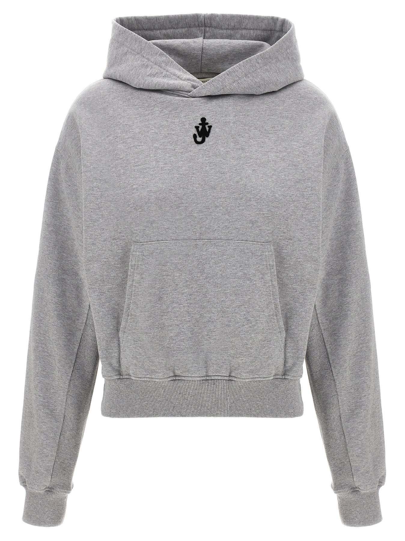 Gauze cotton hoodie with front 'Anchor' logo embroidery, crop model, side inserts in ribbed cotton, kangaroo pocket, long sleeves with cuffs and dropped shoulders.