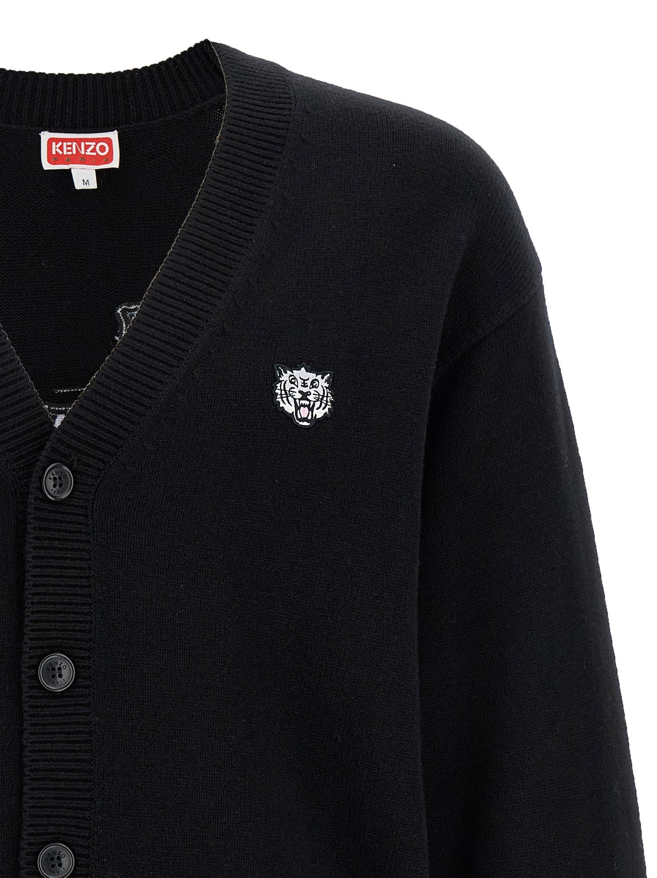 Merino wool and cotton blend cardigan, 'KENZO Happy Tiger' embroidery at the front and back, V-neck, front button closure, long cuffed sleeves and dropped shoulders.