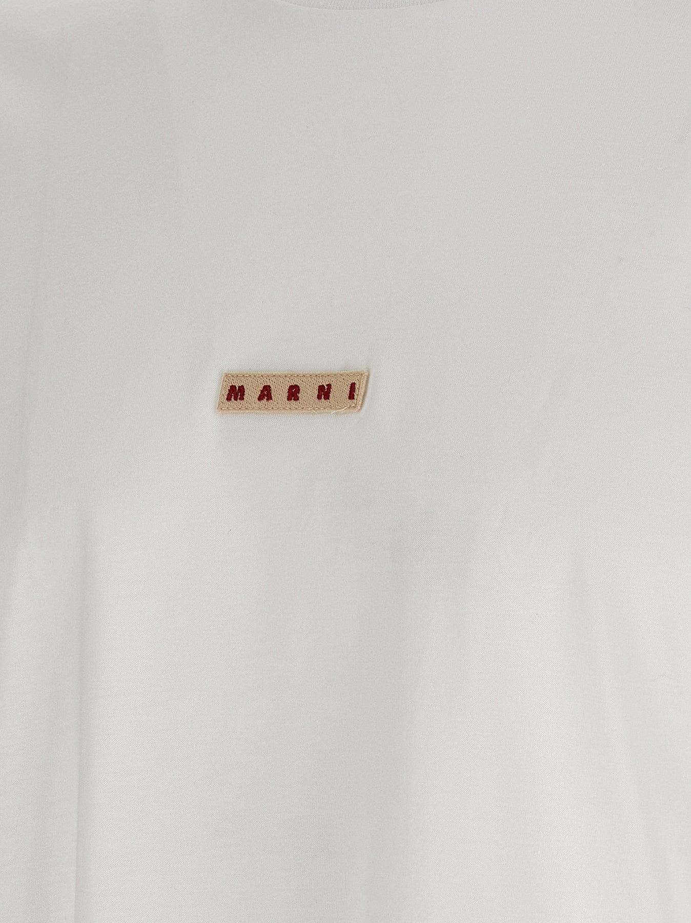 Cotton jersey T-shirt with front logo patch, crew neck, short sleeves with dropped shoulders.