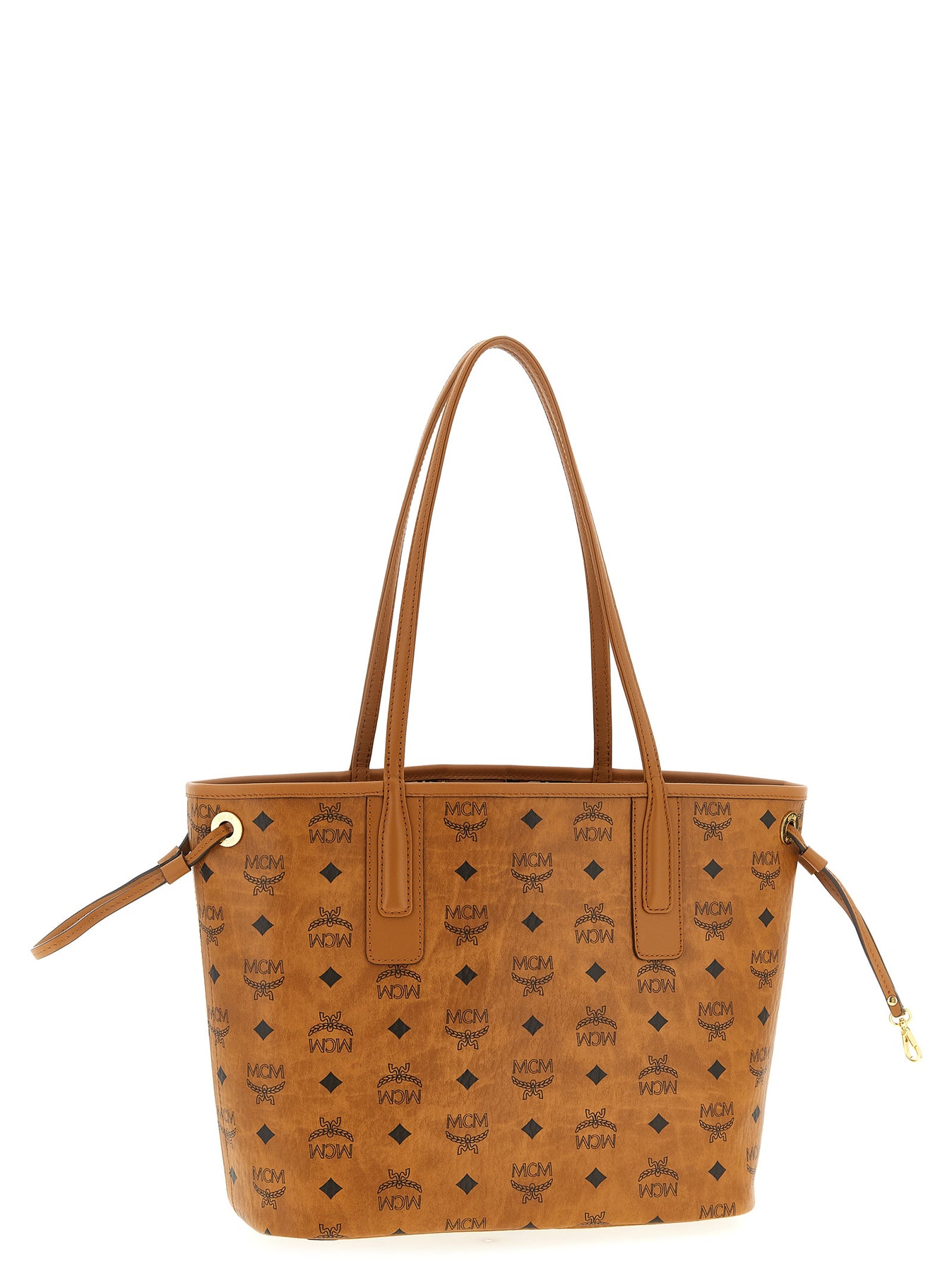 Reversible 'Liz' small shopping bag in Visetos canvas and leather, logo print, double handle, matching removable clutch bag