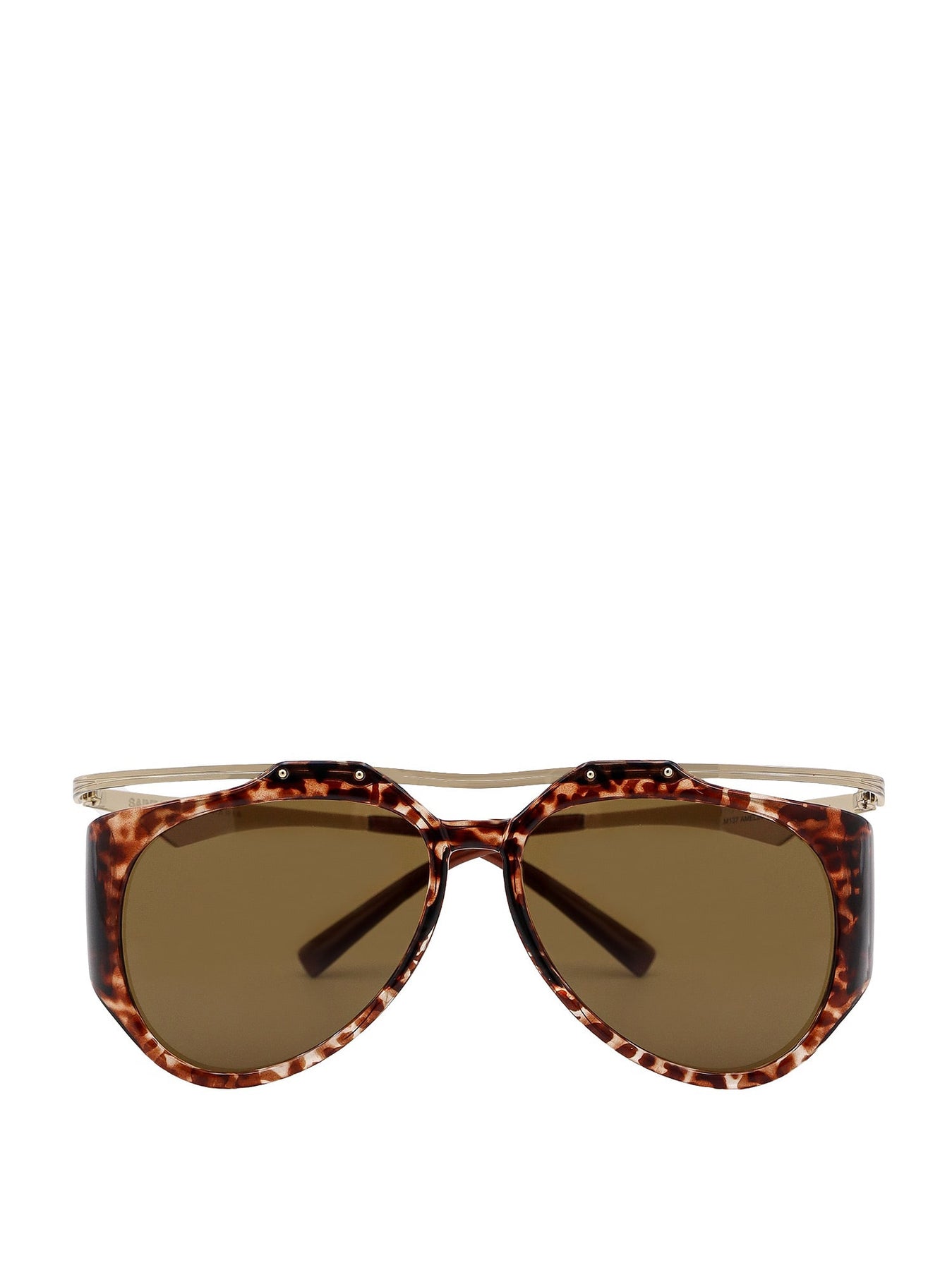 "SL M137" aviator sunglasses from Saint Laurent with brown tortoiseshell "floating" frame and golden metal top bar.