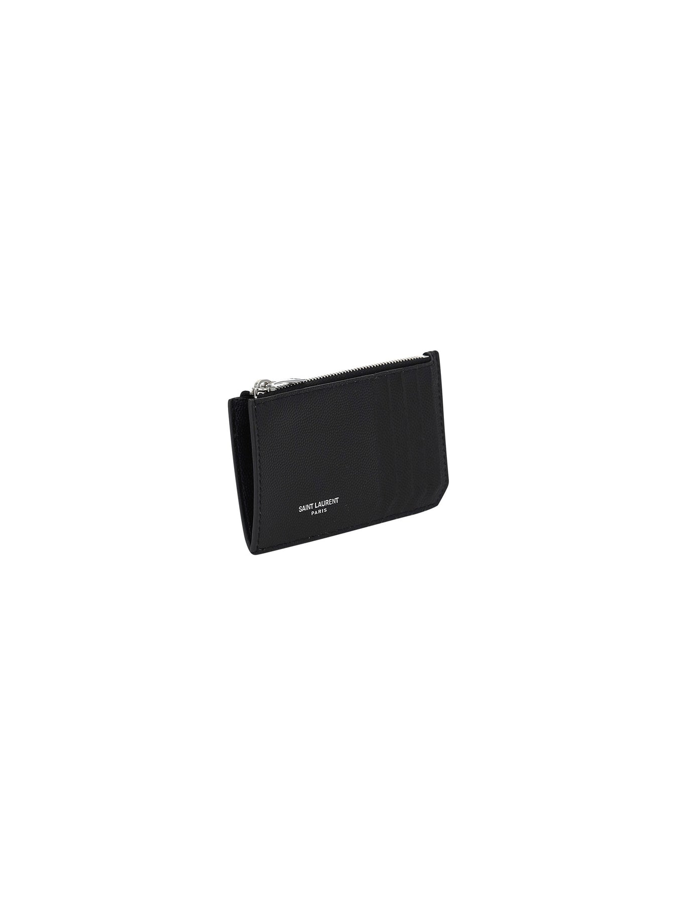 Silver hardware Zip closure Two flat pockets, eight card slots, one zip coin purse Leather lining
