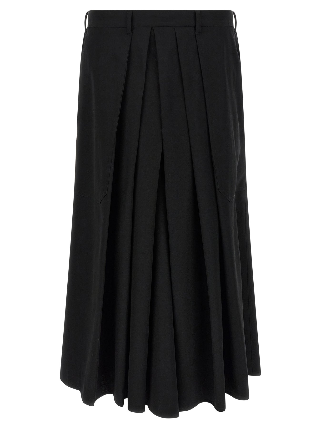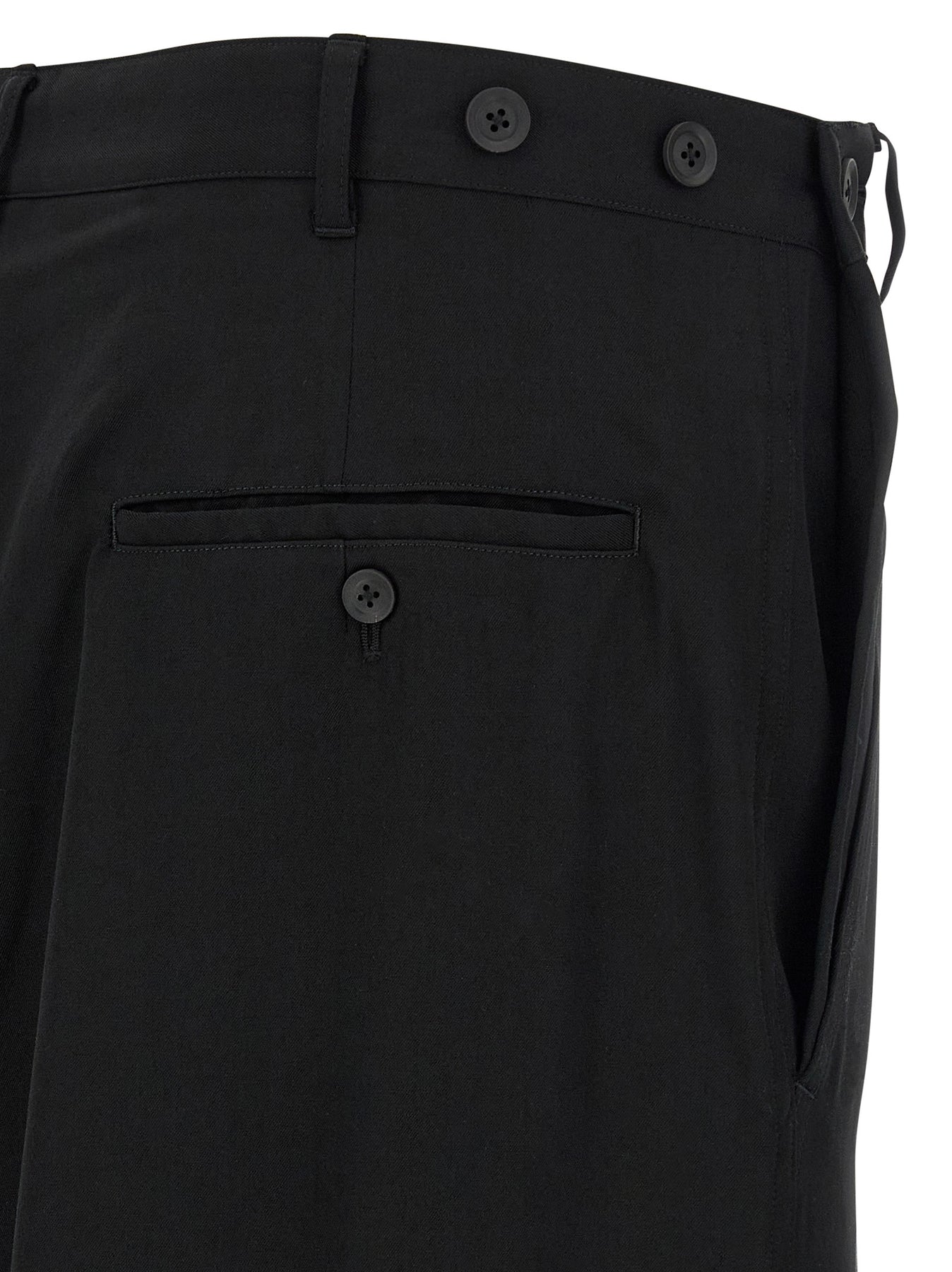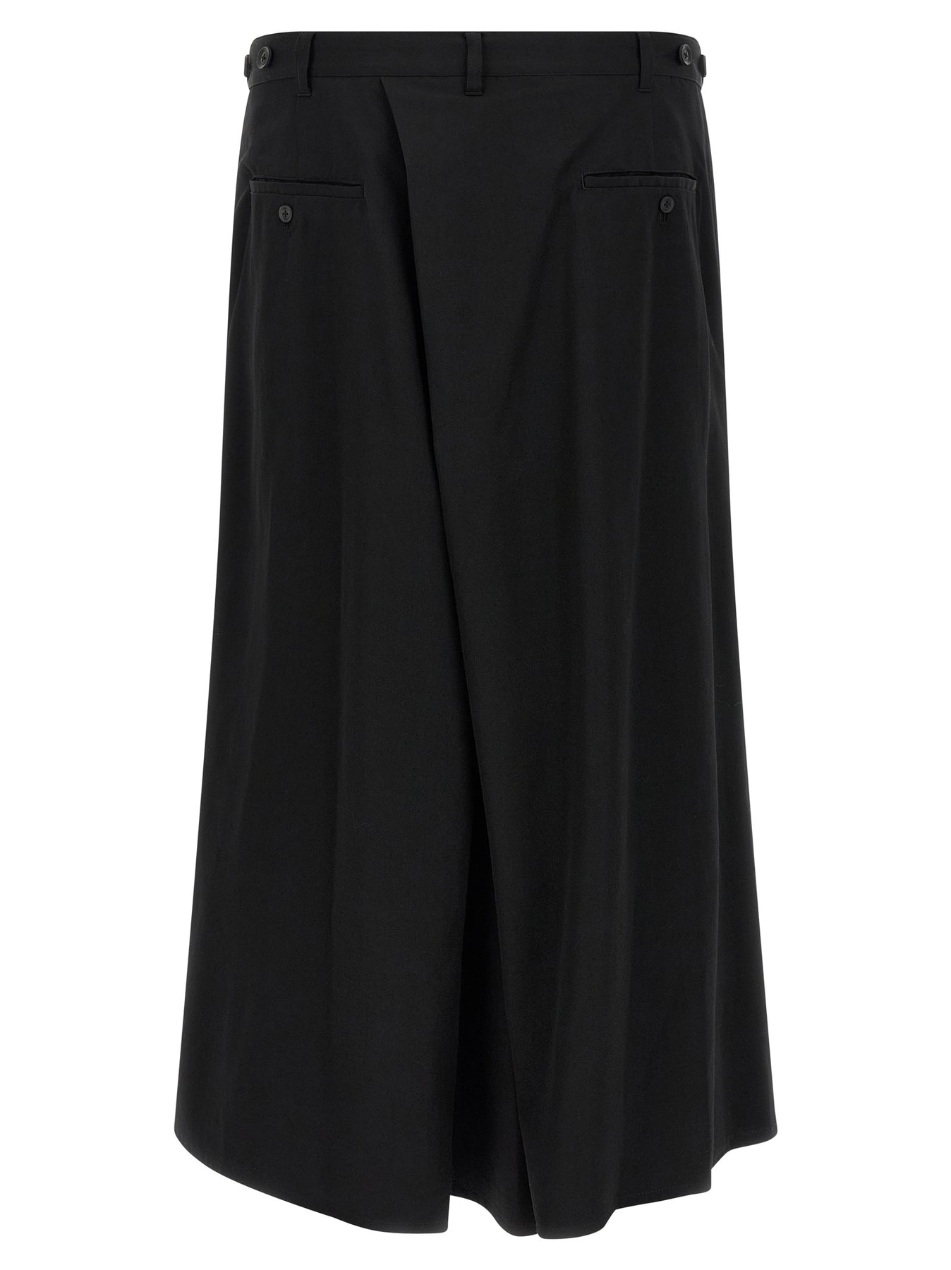 'Hakama' wool gabardine trousers, front drape, pockets, button closure with bellows, wide crop leg.