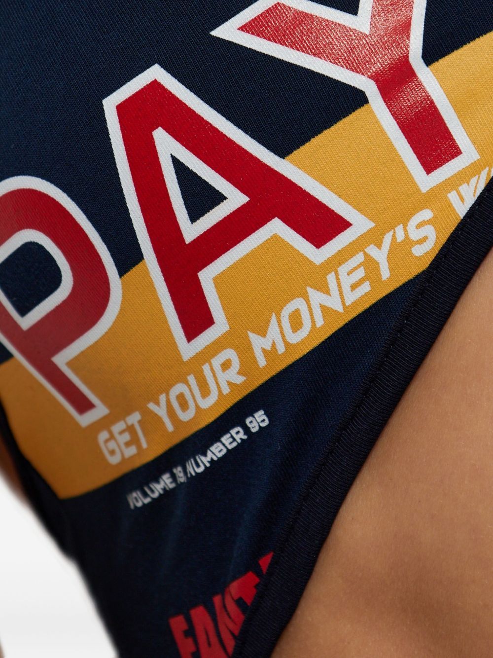 dark blue/multicolour slogan print cut-out detail adjustable spaghetti straps clasp fastening high-cut legs cotton