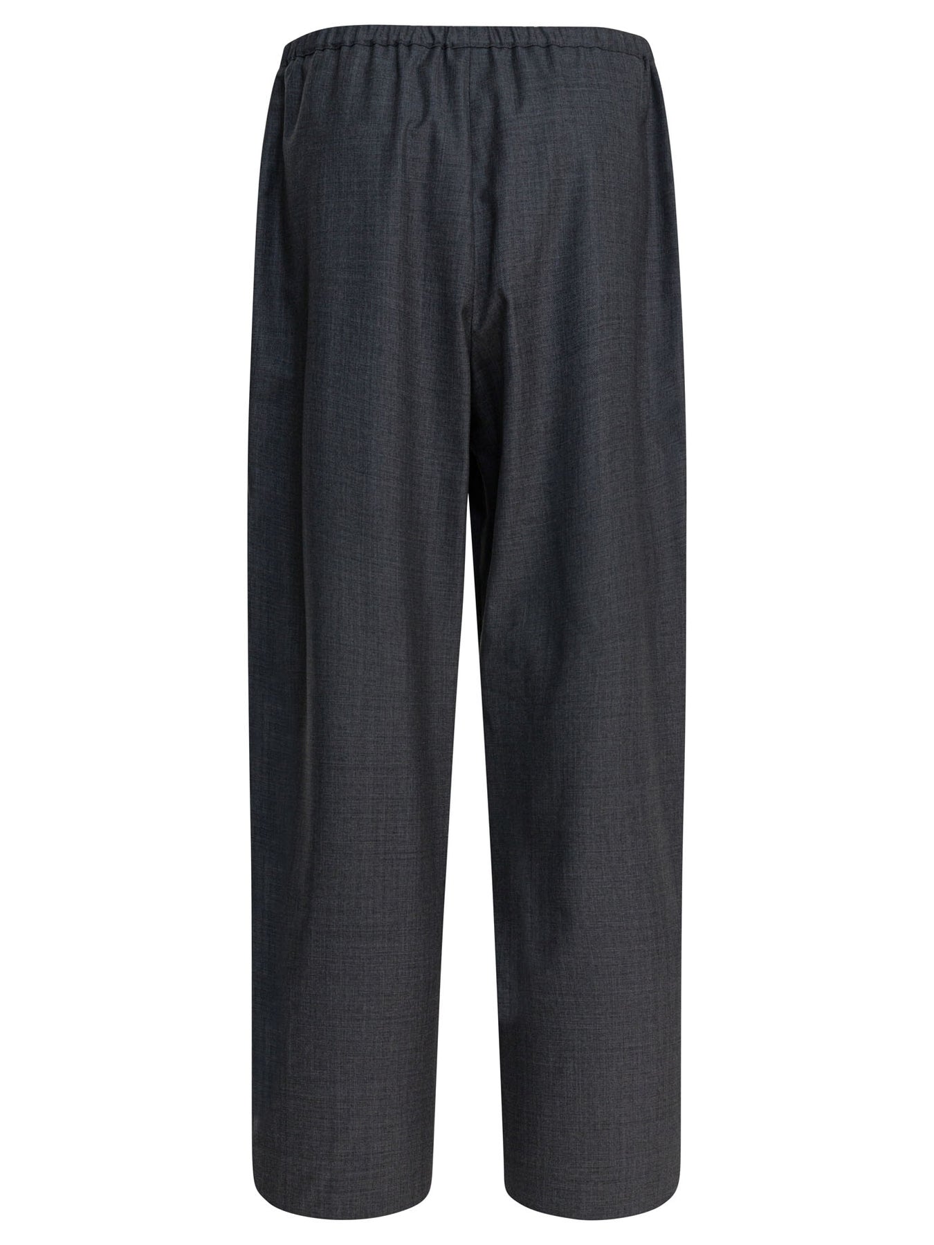 "Cove LDS" LouLou De Saison wool chambray pants, featuring a wide-leg construction and double front darts. The construction includes an integrated drawstring waistband for functional waist adjustment. The wide silhouette promotes a soft fall of fabric throughout the length of the garment, with stitched details that give definition to the shape and facilitate wearability. || - High waist - Solid color - Double front darts - Wool chambray - Drawstring belt - Wide fit