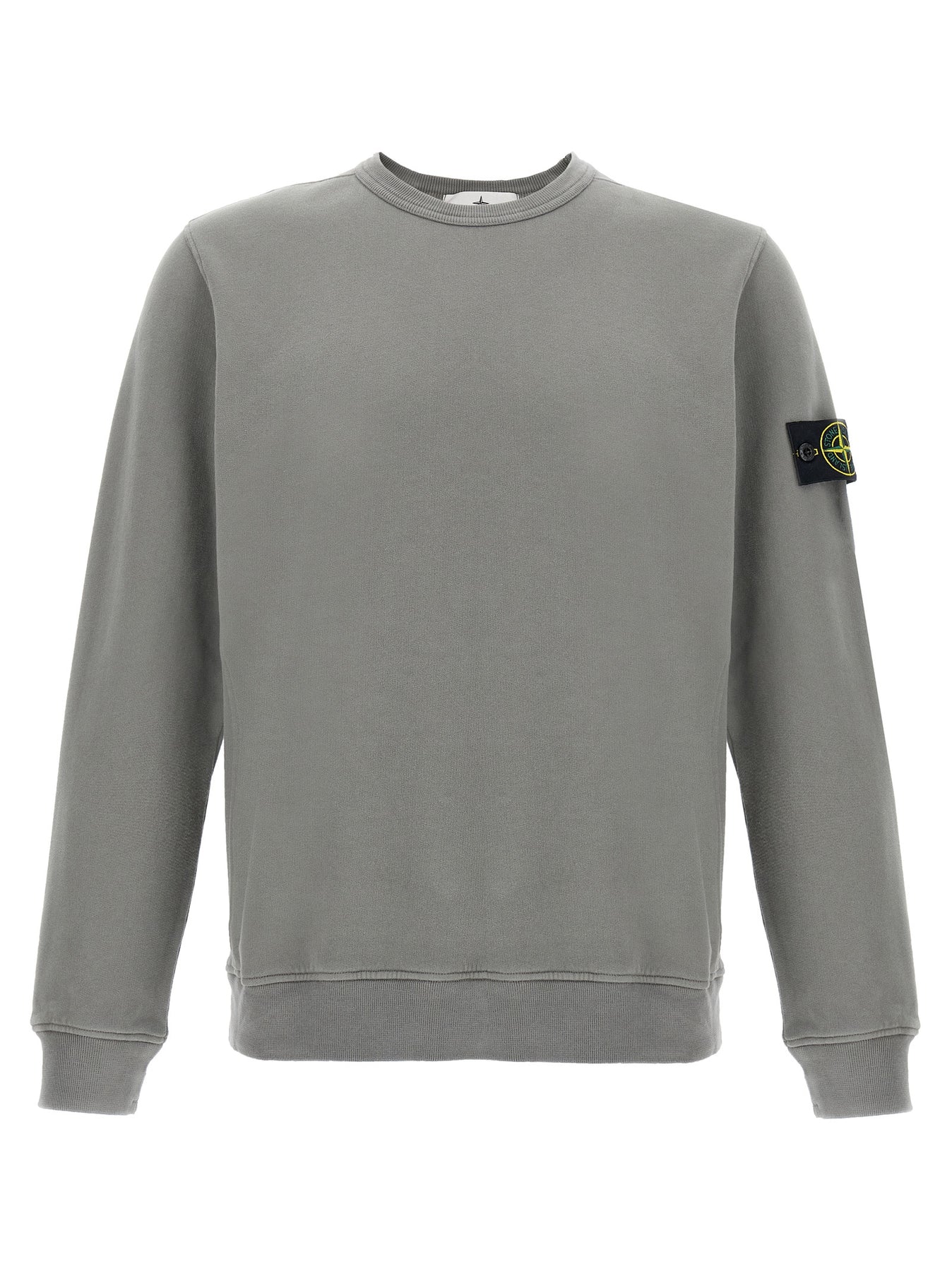 Fleece cotton sweatshirt with ribbed cotton side insert, crew neck, long cuffed sleeves and a logo badge.