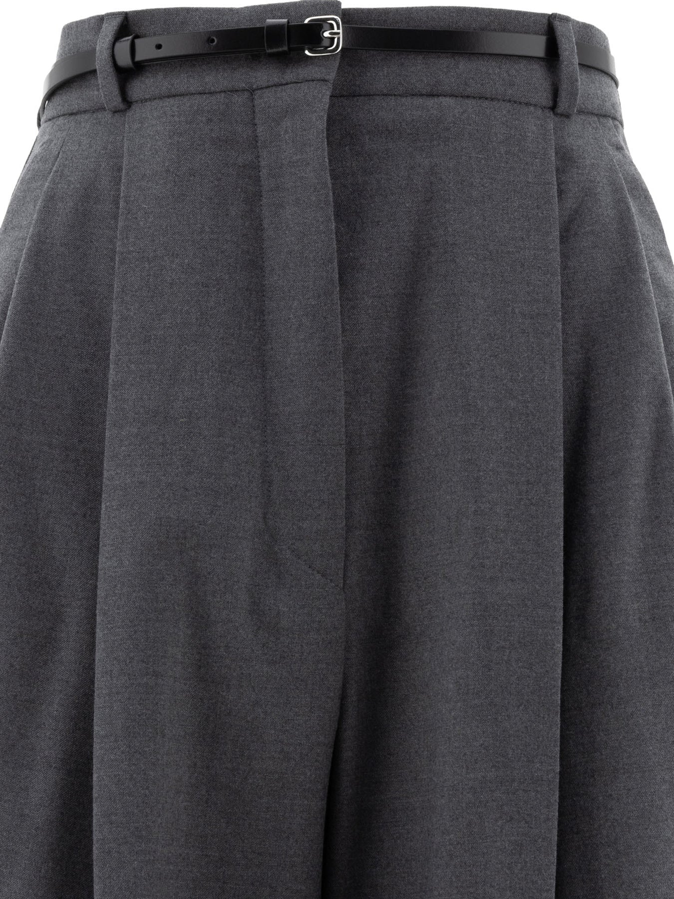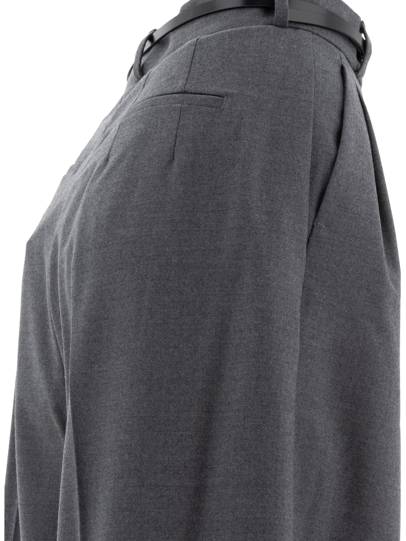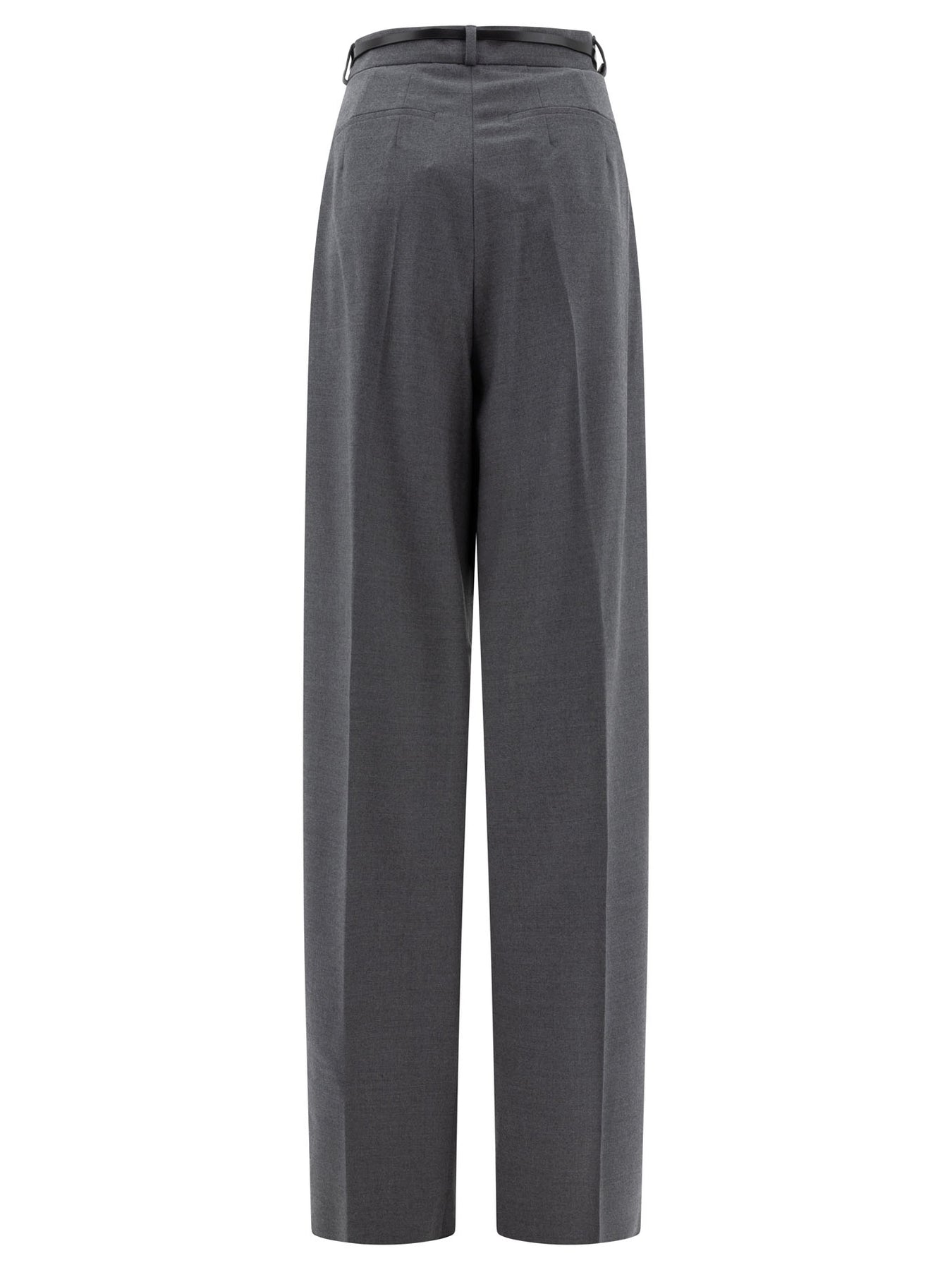 Discover timeless elegance with oversized stretch wool pants by Max Mara Sportmax. This garment embodies a perfect balance between comfort and style, ideal for the sophisticated woman who seeks a refined and contemporary look. Made of stretch wool flannel, these pants stand out for their versatility and ability to adapt naturally to movements. || - Oversize line - Stretch wool flannel - Inspired by men's styles - Custom inner belt - Double dart for extra volume - Slanted side pockets - Back welt pockets - Contrasting leather belt - Metal buckle || These pants pair perfectly with a silk shirt and structured blazer for a professional look. Add a leather shoulder bag and stiletto shoes for a touch of sophistication. Complete the look with minimalist accessories and a stylish headband.