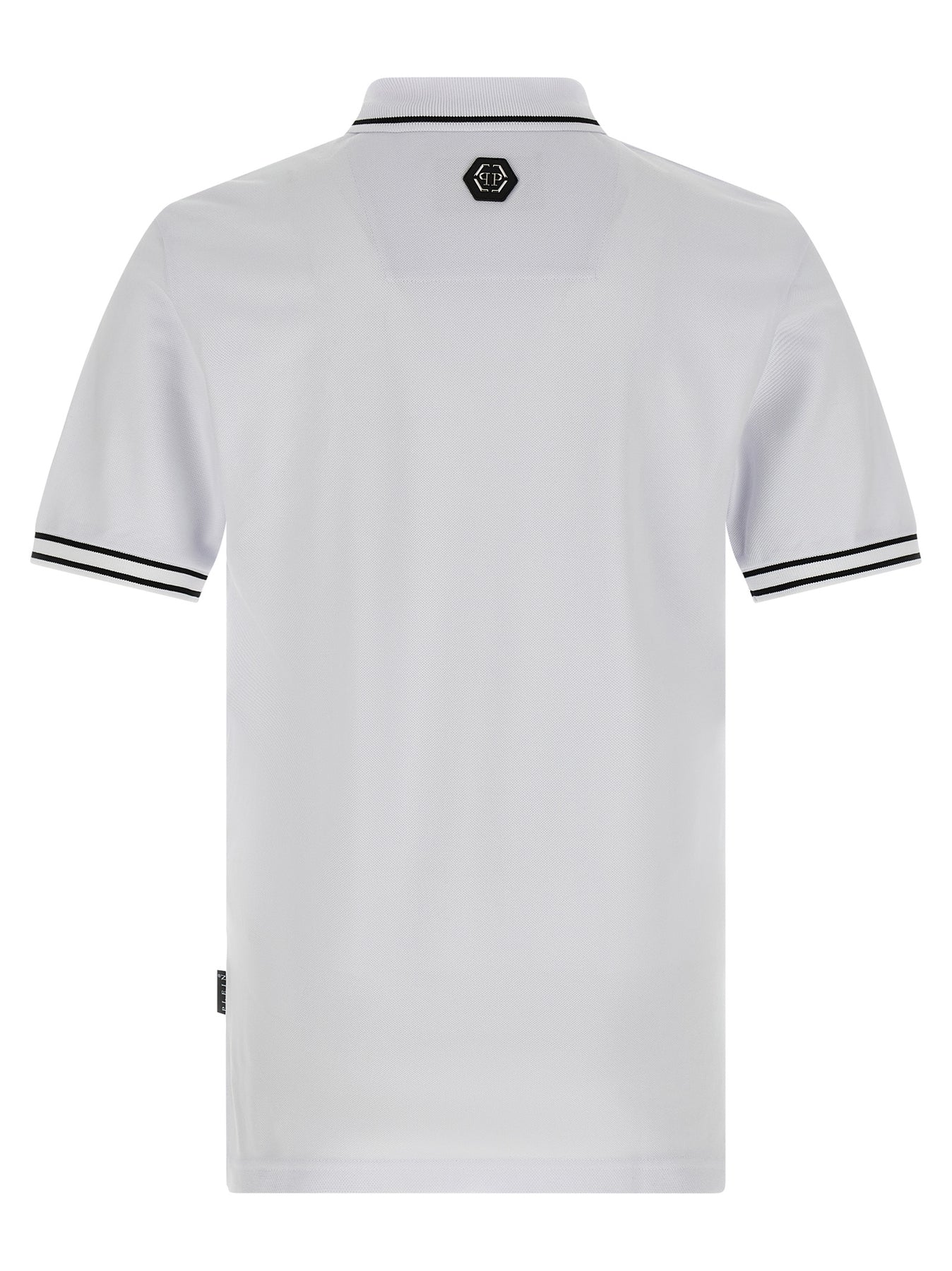 'Skull & Bones' cotton piqué polo shirt with contrast details, front silicone logo, leather patch with metal logo at the back, collar and buttons, short sleeves, side slits.