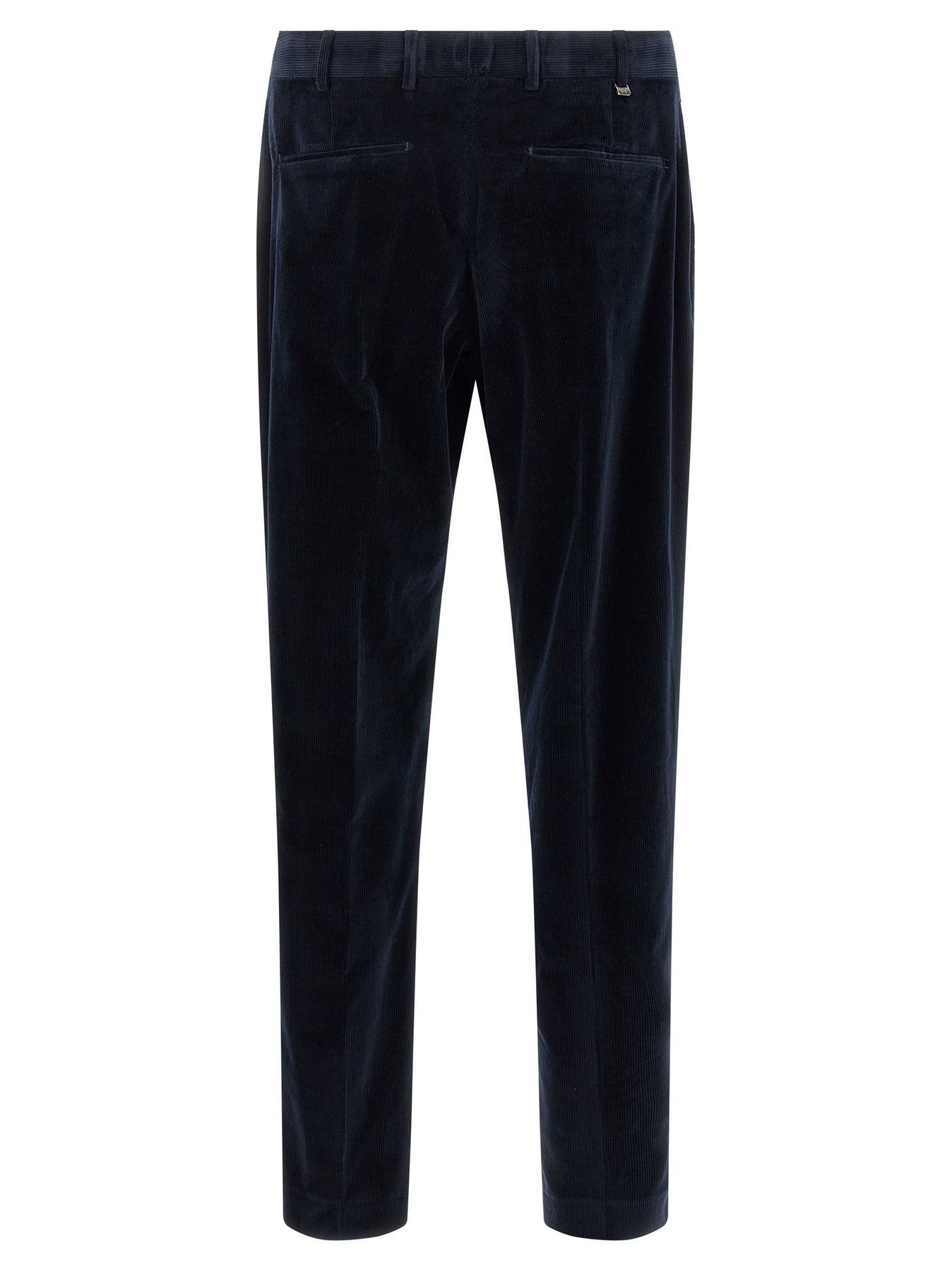 'The Rebel' corduroy pants with elastic waistband, front button closure, pockets, straight leg, stretched pleat.