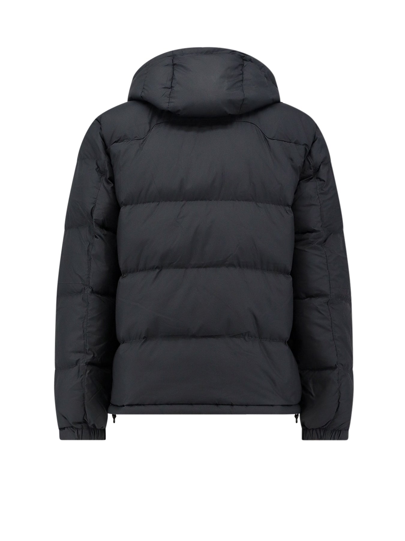 Zip closure with double slider Removable padded hood Front zip pockets Logo embroidery on the front Adjustable drawstring hem 100% recycled polyester Filling: 75% down, 25% feathers (RDS) SKU: 710968278001