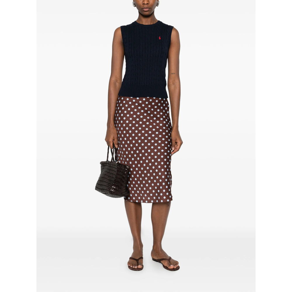 navy blue cable knit ribbed hem ribbed trims crew neck