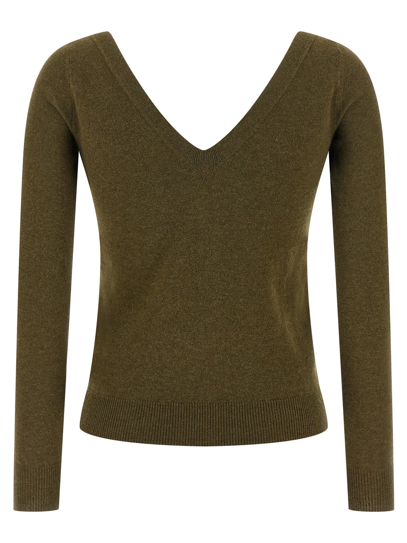 Cashmere sweater with wide V-neck front and back, long cuffed sleeves.