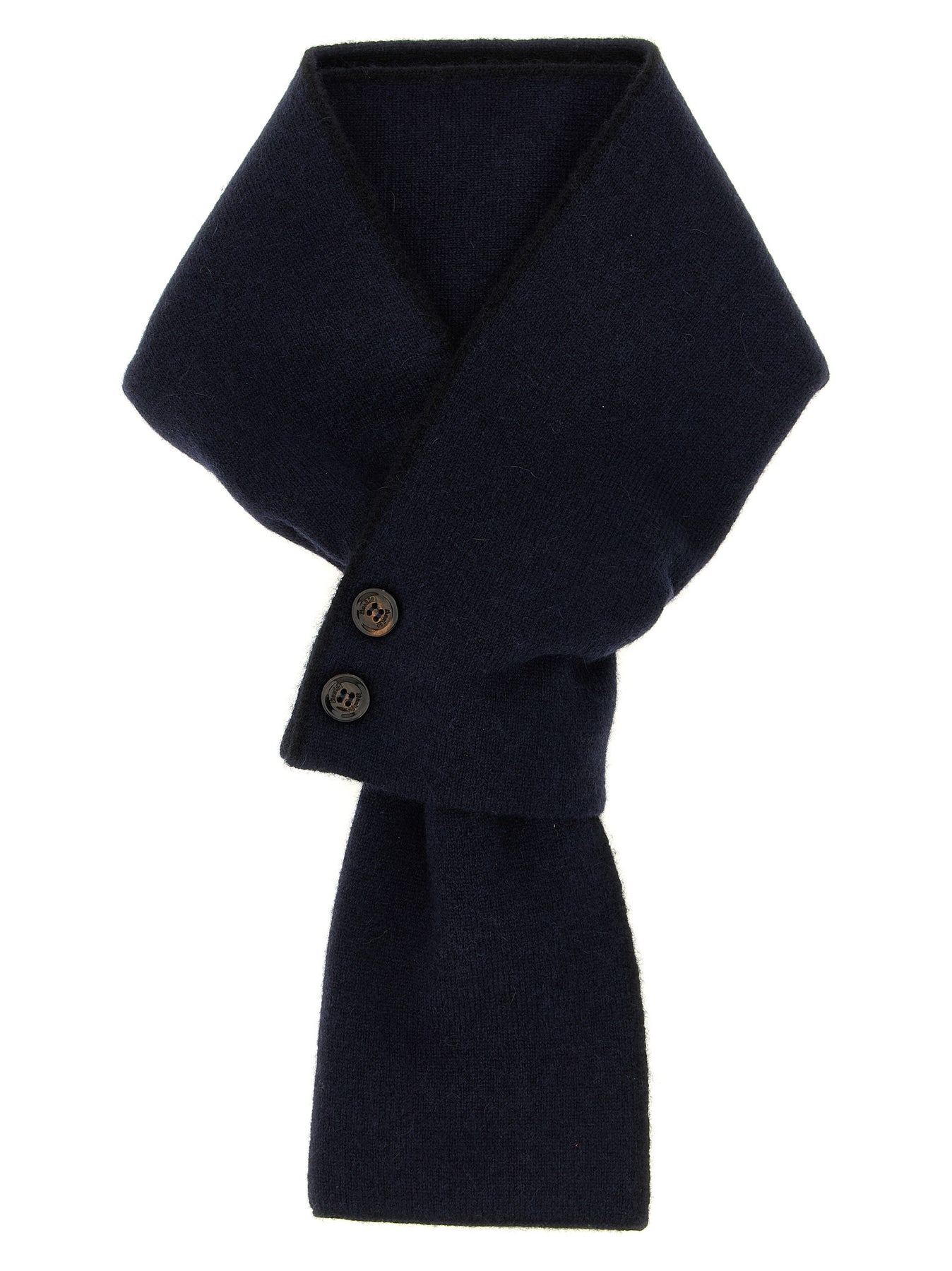 Twisted pure Mongolian cashmere thread scarf with contrast detail, front button detail.