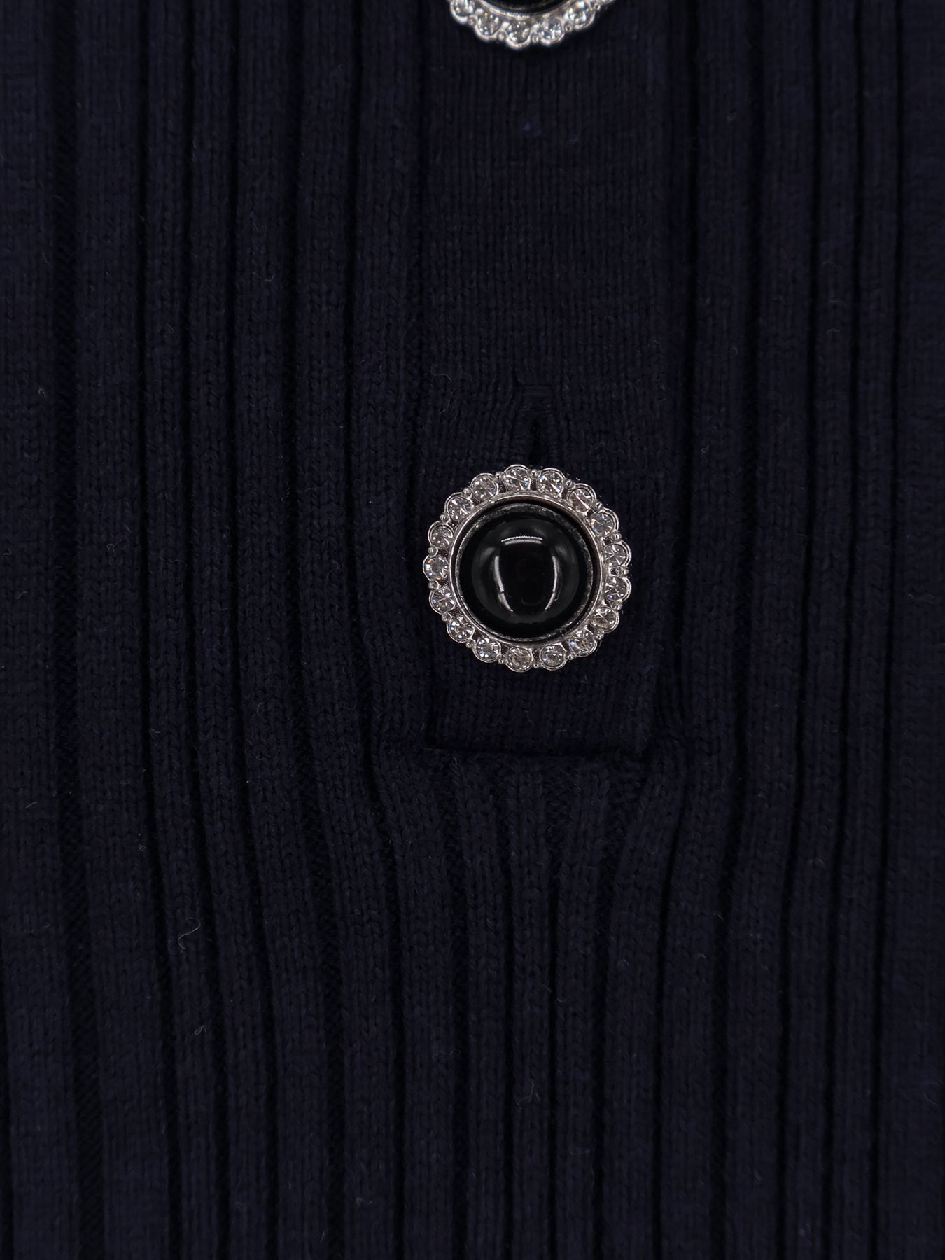 Jewel button closure Maxi contrasting collar Short sleeves Flared 42% polyamide, 22% viscose, 17% polyester, 15% wool, 4% cashmere SKU: AW25014SNNAVY
