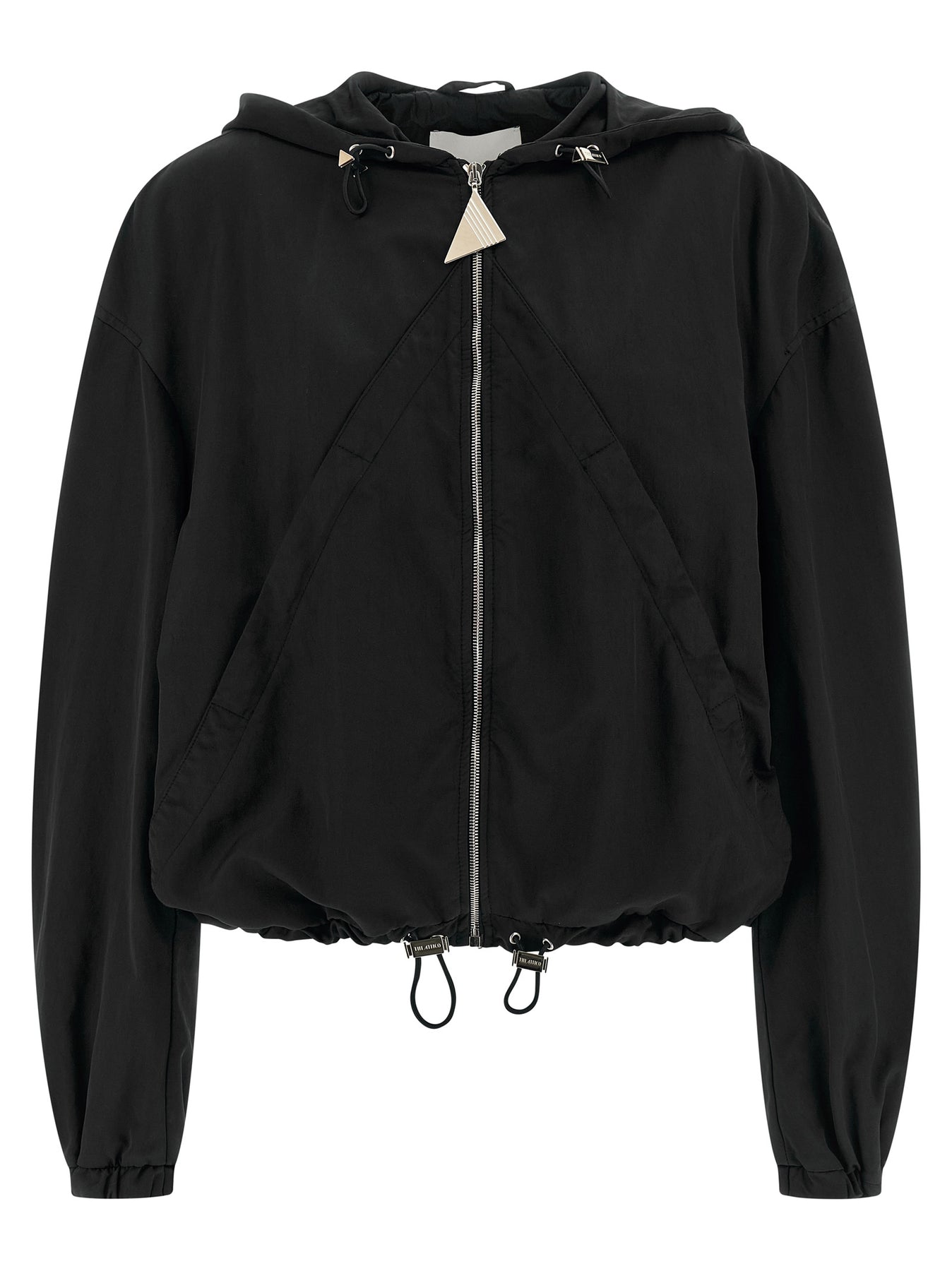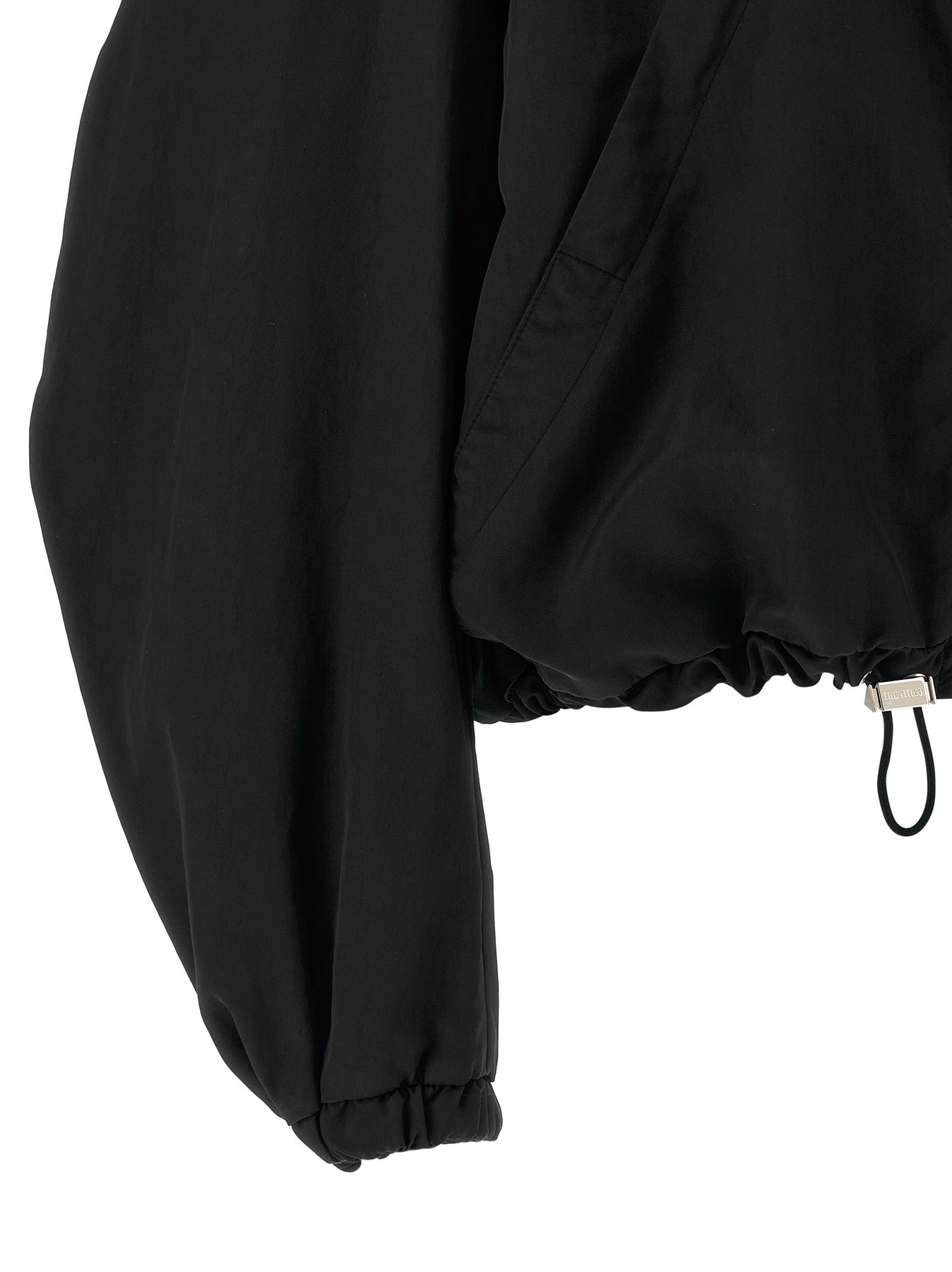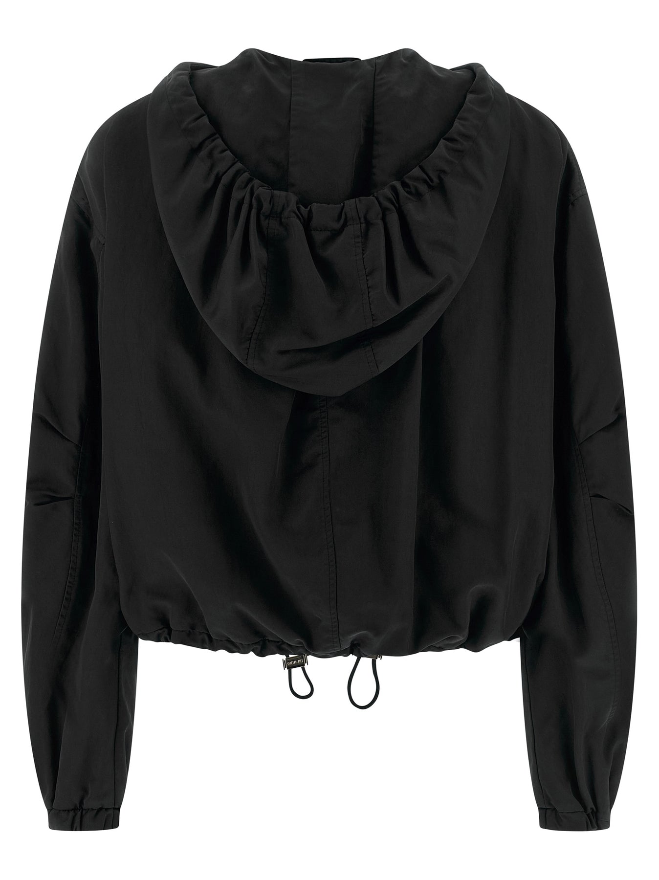 Overdyed nylon hooded bomber jacket, front zip closure, pockets, wide long sleeves with elastic cuffs and dropped shoulder, drawstring on the hem, technical fabric lining.