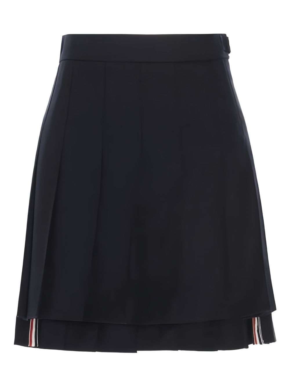 navy blue pleated design panelled construction button fastening grosgrain ribbon trim layered hem
