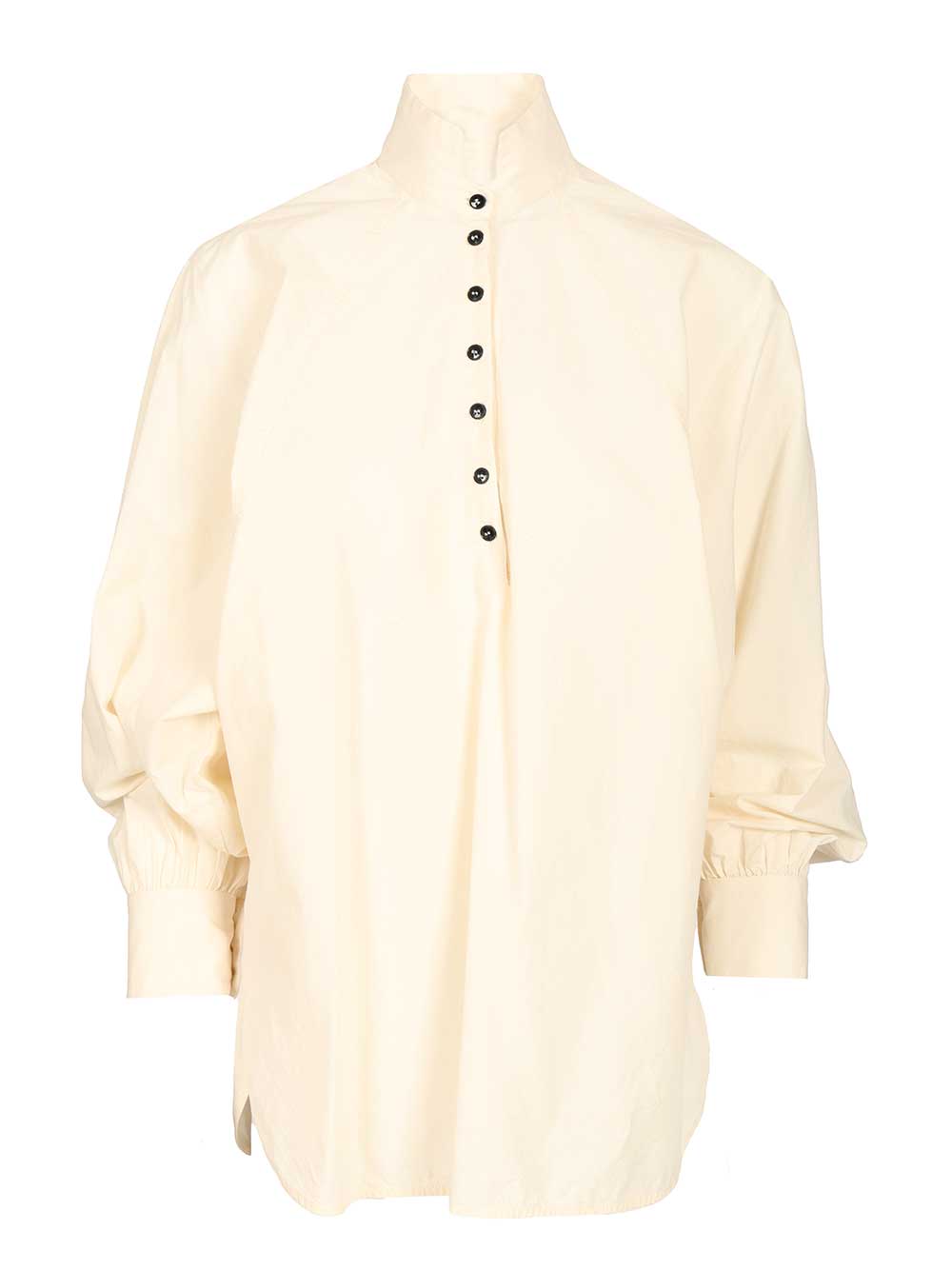 "Cristal Tendon" shirt in crumpled natural cotton poplin by Barena, with batwing sleeves and a mandarin collar.